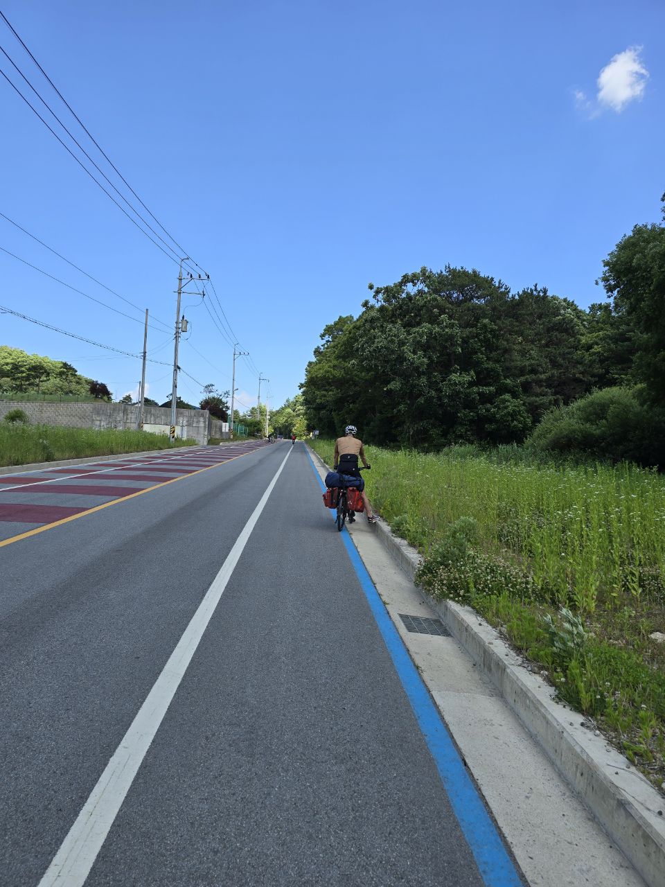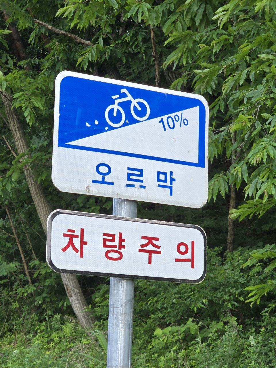 2ème jour de vélo et Komott est devenu mon meilleur allié! J'ai trouvé le tracé GPS de la "four rivers bike path" et je télécharge le matin le tracé du jour. Je peux ensuite vérifier régulièrement que nous sommes sur le bon chemin! Même comme ça et en repèrant les signes de la voie, je ne peux m'empêcher de demander régulièrement aux cyclistes Coréens que nous croisons si nous nous dirigeons bien vers Busan...nos déboires du début m'ont déstabilisée et il va me falloir du temps pour reprendre confiance. Il faut dire que la Corée est un véritable paradis pour les cyclistes....Le pays est truffé de pistes cyclables et il est facile de se tromper. Ce midi, nous profitons de traverser une petite ville pour nous arrêter manger. Nous entrons dans un restaurant de cuisine traditionnelle Coréenne. Nous sommes évidemment les seuls étrangers et la carte est en Coréen. Munis de google traduction, nous choisissons parmi les plats: ragoût de loche moelleuse au tofu, ragoût de loche épicée, soupe de tête de vache, pôtée de tête de boeuf, beignets de calamars...nous choisissons la sûreté en optant pour le calamar mais ce qui nous est servi ressemble plutôt à de la friture de poissons. J'utilise Google traduction pour demander des portions de riz (il faut des sucres lents pour nos mollets d'acier!) Mais encore une fois cela semble compliqué et nous finissons par comprendre que ce n'est pas dans leurs habitudes de servir du riz avec la friture...En sortant du restaurant, nous tombons sur un magasin de vente et de réparation de vélo et tentons pour la 5ème fois de faire réparer la potence de mon vélo et cette fois sera la bonne ! Nous en profitons pour faire vérifier nos vitesses qui passent mal et bien nous en a pris car nous découvrons que les câbles sont sectionnés...sûrement une conséquence du trajet dans la soute de l'avion! Je repart donc avec une potence fonctionnelle et c'est un vrai soulagement. Je suis prête à aller au bout du monde....mais déjà jusqu'à Busan ce sera un bon début! En fin de journée, nous posons les vélos dans un charmant camping au bord du fleuve et profitons de pouvoir nous doucher !