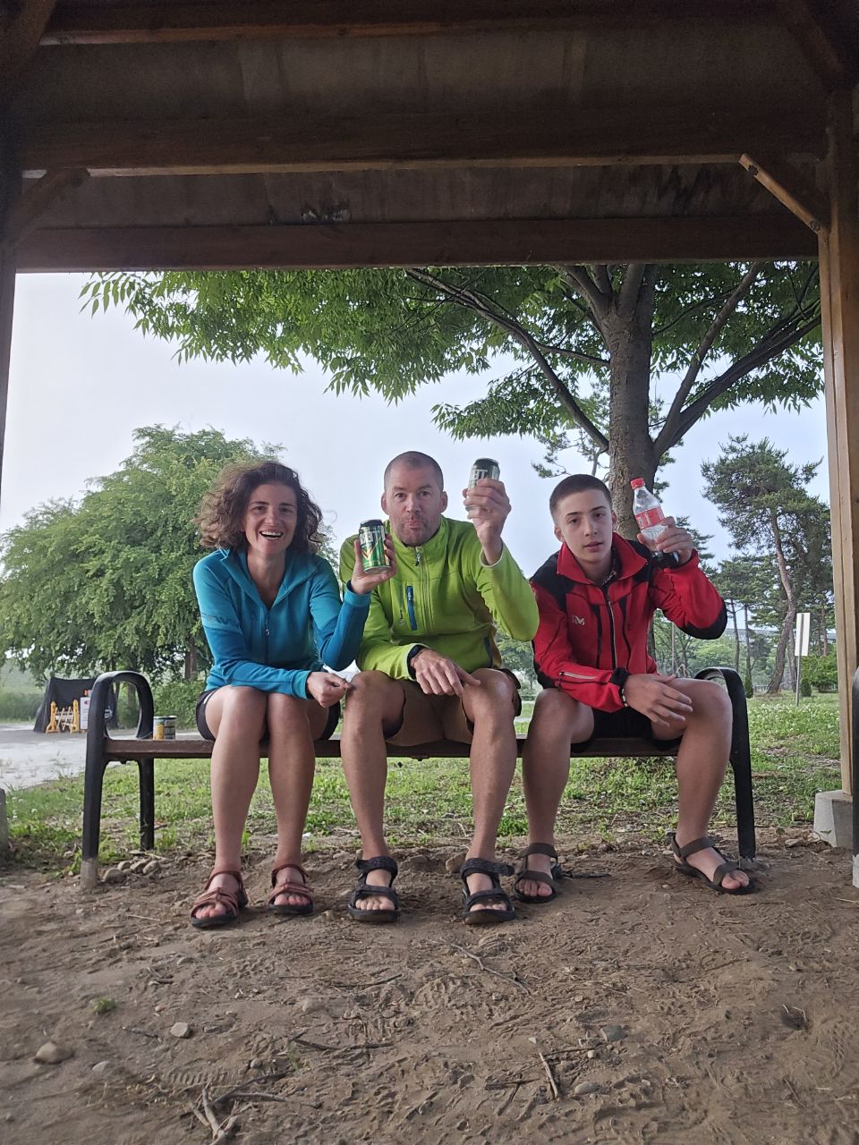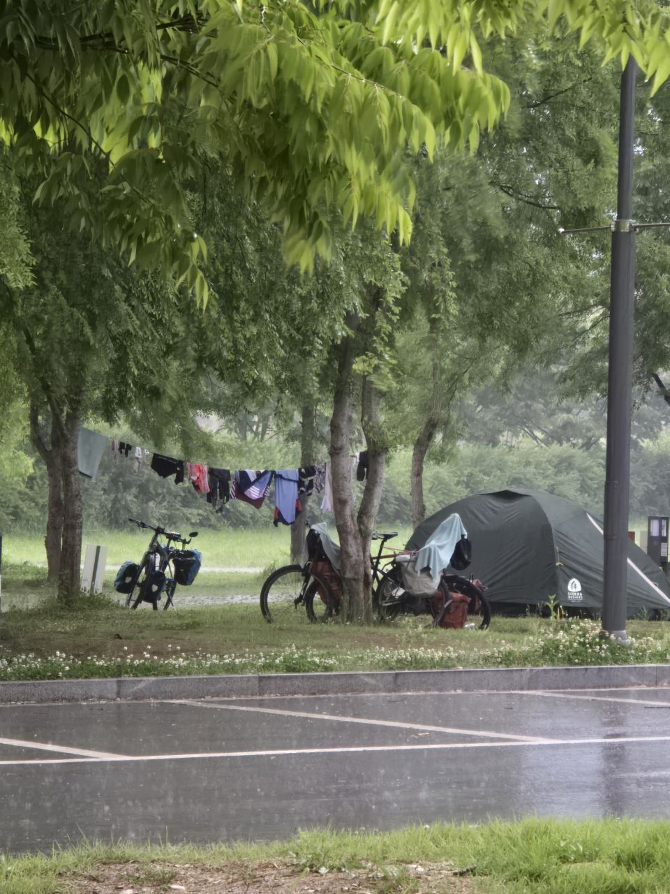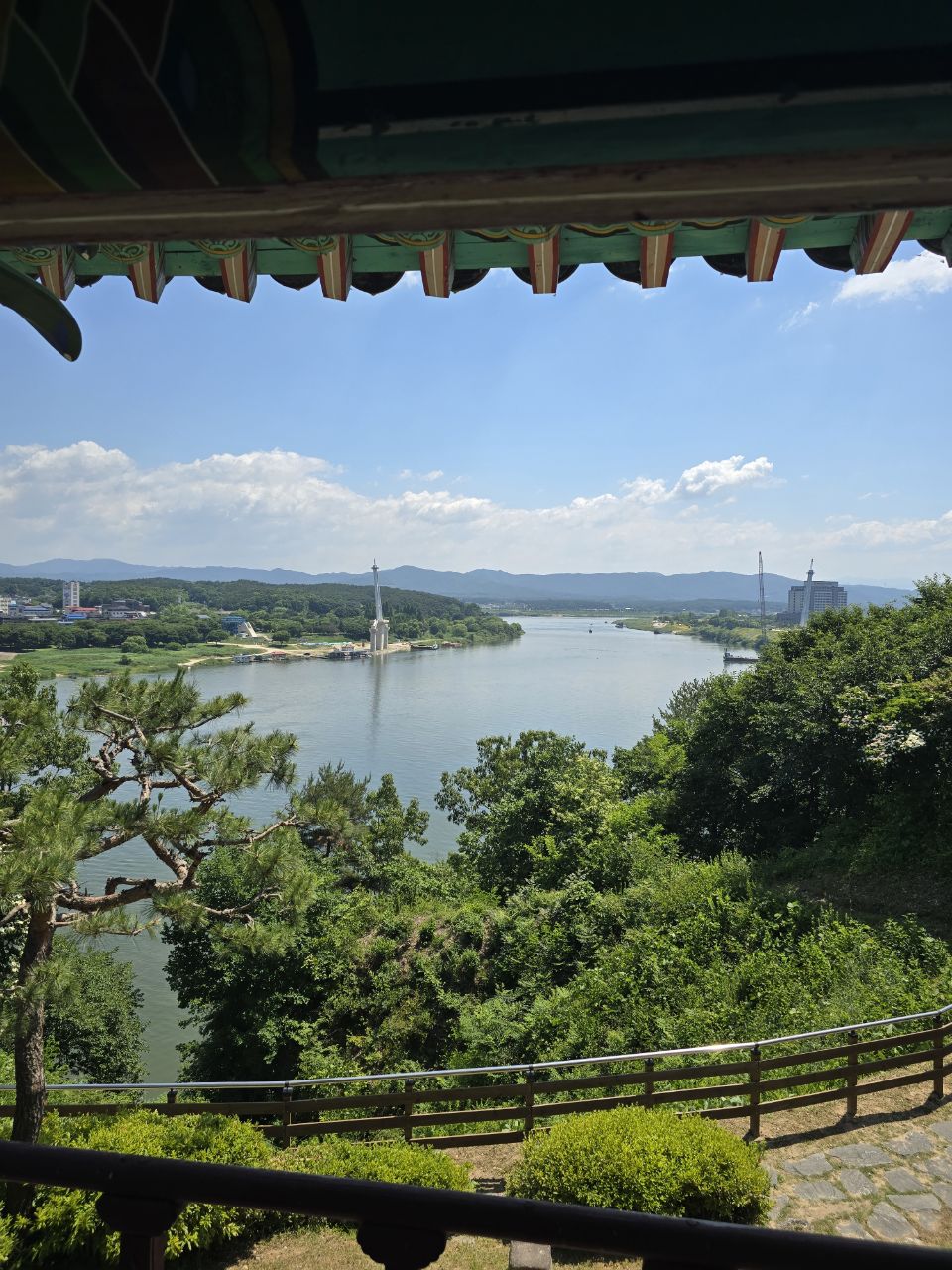 Nous prenons la route ce matin sous un soleil radieux! La route est agréable, nous longeons toujours le fleuve et croisons plusieurs barrages. On commence à apercevoir au loin les montagnes (mauvais présage pour nos mollets!) Et les premières rizières. Dans la première petite ville, nous nous arrêtons pour une pause boissons et pour visiter un petit temple. Sur la voie cyclable, nous croisons beaucoup de Coréens à vélo qui nous saluent et nous encouragent. Ils sont très sportifs et fans de vélo que ce soit hommes ou femmes. A midi, nous stoppons dans une petite ville où le temps semble s'être arrêté...on pourrait se croire dans une ville fantôme. Nous en croisons régulièrement qui contrastent avec les mégalopoles ultra-modernes qui jallonnent le pays. Alors que nous mangeons, un groupe de petites mamies s'arrêtent à côté de nous ,intriguées par nos vélos lourdement chargés. Quand nous leur faisons comprendre que nous allons jusqu'à Busan elle sont très impressionnées surtout par Marius. Il a ici un succès fou...les Coréens n'étant pas habitués à croiser une famille à vélo il sont admiratifs d'autant plus qu'il sont très protecteurs avec leurs enfants. En fin de journée, nous stoppons dans un petit camping. À 18h , le campement est installé et nous en avons profité pour faire une lessive à la main. Nous avons été plutôt efficaces!! Malheureusement, il se met soudainement à pleuvoir des cordes et nous nous refugions sous un faré pour manger. La lessive est trempée, il fait froid, nous n'avons plus qu'à aller nous coucher!