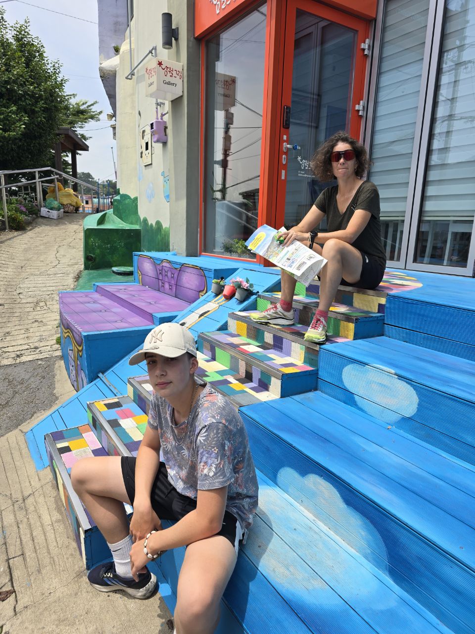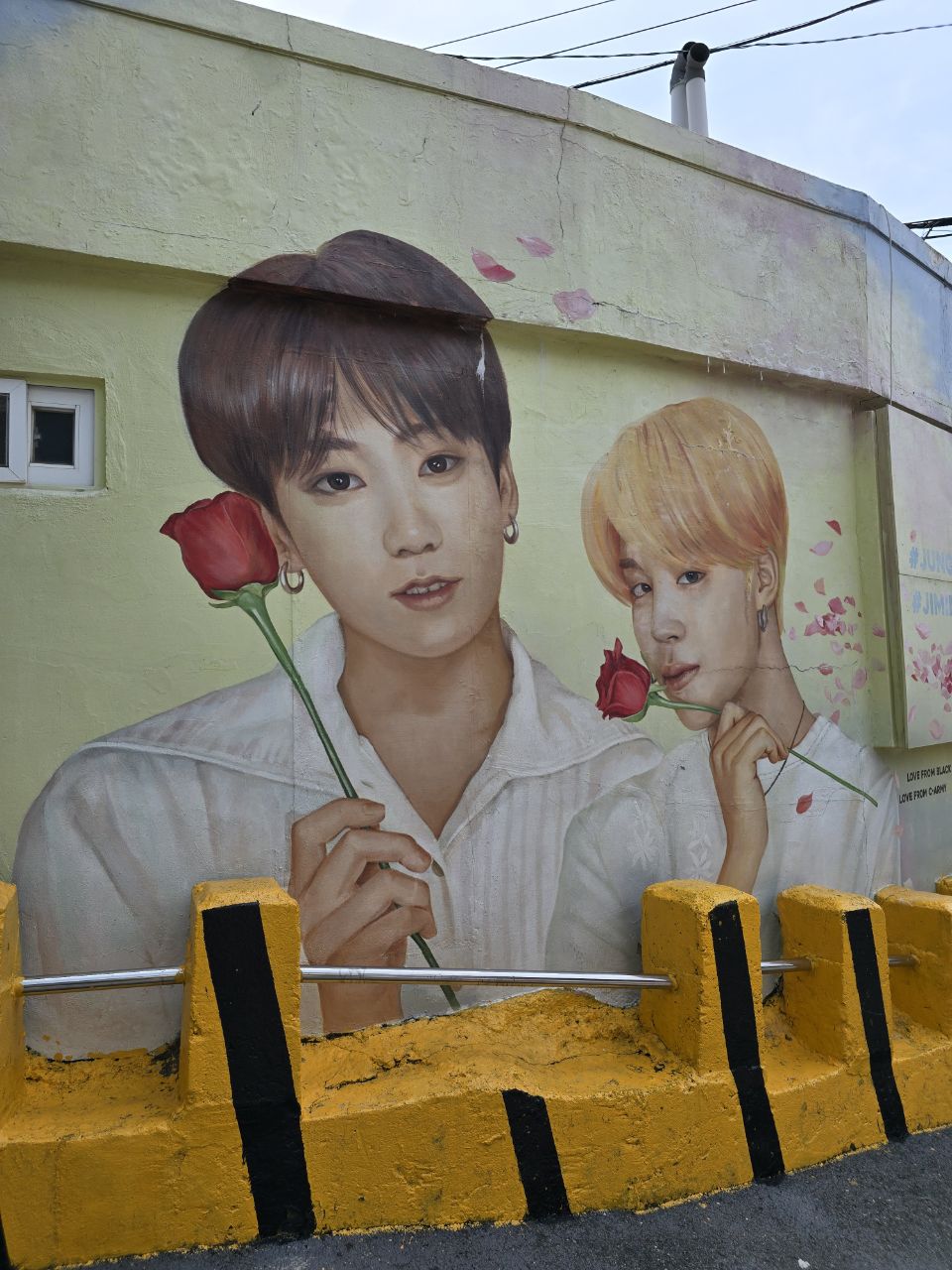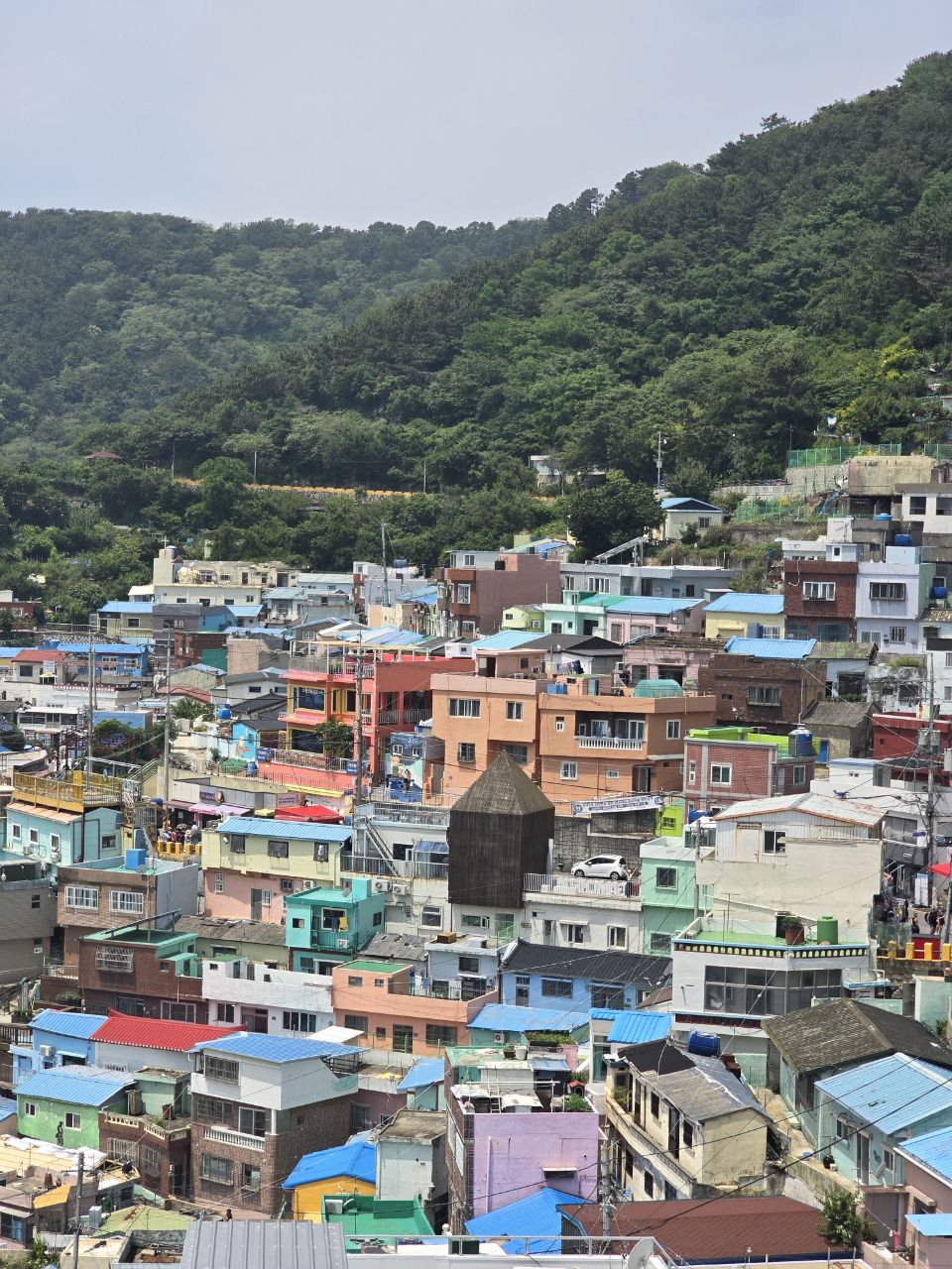 Nous profitons de ces 3 jours pour explorer Busan et les centres d'intérêt y sont nombreux! Nous commençons par le village culturel de Gamcheon, véritable œuvre d'art à ciel ouvert! Face à la mer, nichée contre le flan d’une montagne, Gamcheon Culture Village est l’une des attractions phares de Busan. Avec ses maisons colorées perchées sur les hauteurs, ses œuvres d’art et ses paysages époustouflants, le site séduit les visiteurs. Pourtant, personne n’aurait pu prédire cela il y a quinze ans : avant sa restauration entreprise à la fin des années 2000, Gamcheon n’était qu’un bidonville voué à l’abandon. Gamcheon voit le jour dans les années 1920-1930 mais ce n’est qu’à partir du milieu du XXe siècle qu’il prend véritablement son essor. Pour fuir la Guerre de Corée (1950-1953), de nombreux réfugiés affluent vers Busan, alors la seule zone de la péninsule encore sous contrôle sud-coréen. Certains d’entre eux se rassemblent ainsi à Gamcheon et y élèvent des dizaines de maisons de fortune. Dans les décennies qui suivent, et malgré la fin du conflit, le village de Gamcheon reste l’un des secteurs les plus pauvres de Busan. Dans un effort pour contrer cela, la ville décide en 2007 de se lancer dans un grand projet de rénovation et fait alors notamment appel à des artistes pour transformer le quartier en un véritable pôle culturel et touristique. C’est suite à ces travaux majeurs, entamés en 2009, que Gamcheon devient le village aux couleurs chamarrées que l’on connaît aujourd’hui.