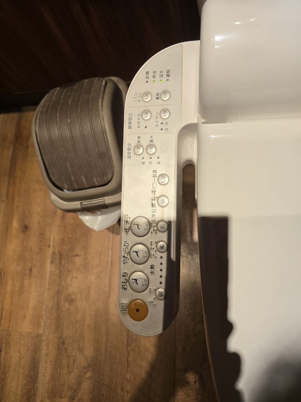 Comme demandés par certains/aines, je vous joins des photos des toilettes Japonaises. Tout est prévu pour les parents puisqu'un petit siège permet d'accueillir bébé pendant que les parents sont sur les toilettes. Jet pour les femmes, pour la grosse commission, température de l'eau, force du jet, cuvette chauffante et même la possibilité de mettre de la musique pour couvrir tout bruit gênants, tout est prévu pour que ce moment au petit coin soit le plus doux possible. Certains sont équipés d'une soufflerie pour sécher le tout mais pas tous!