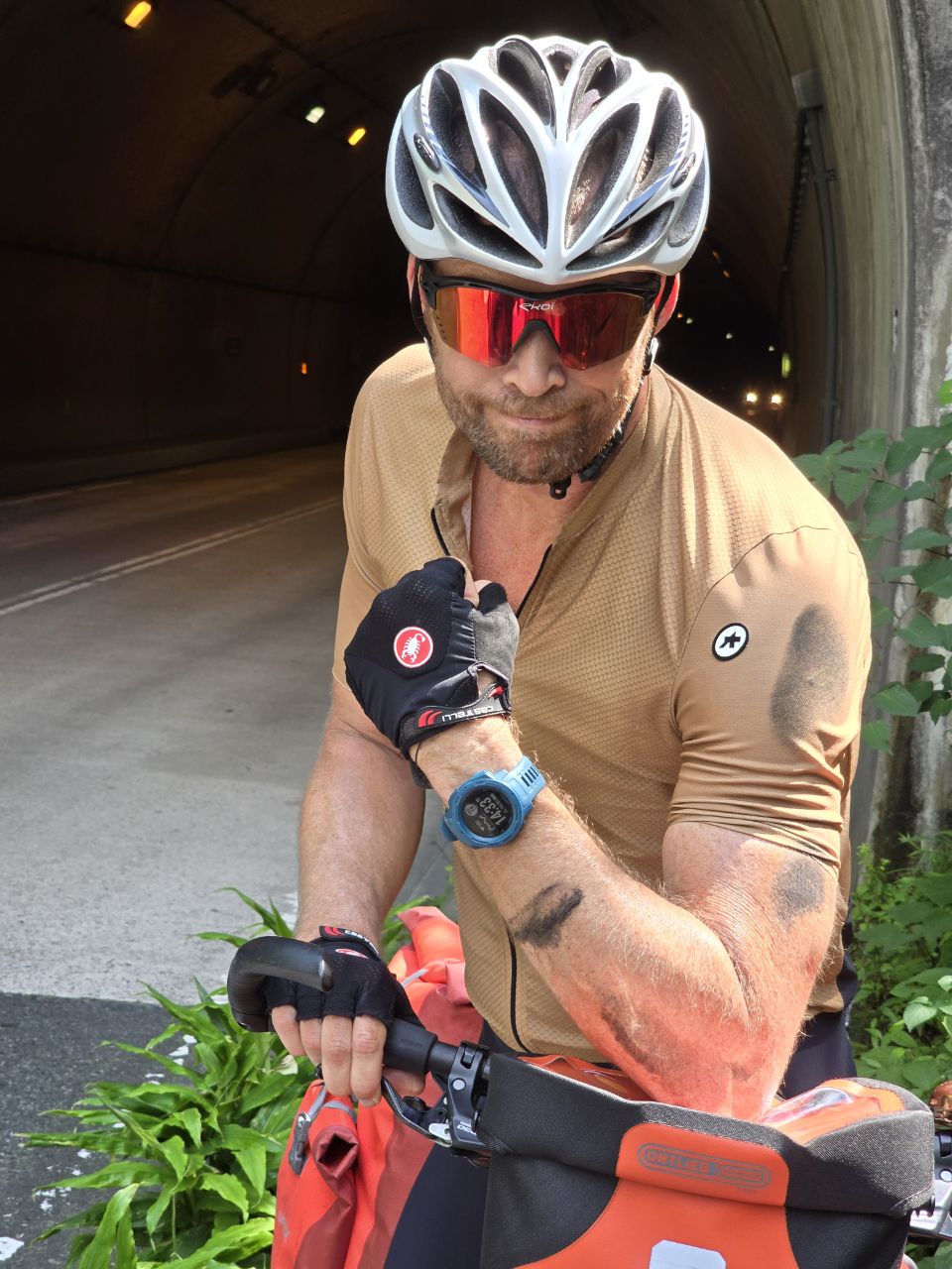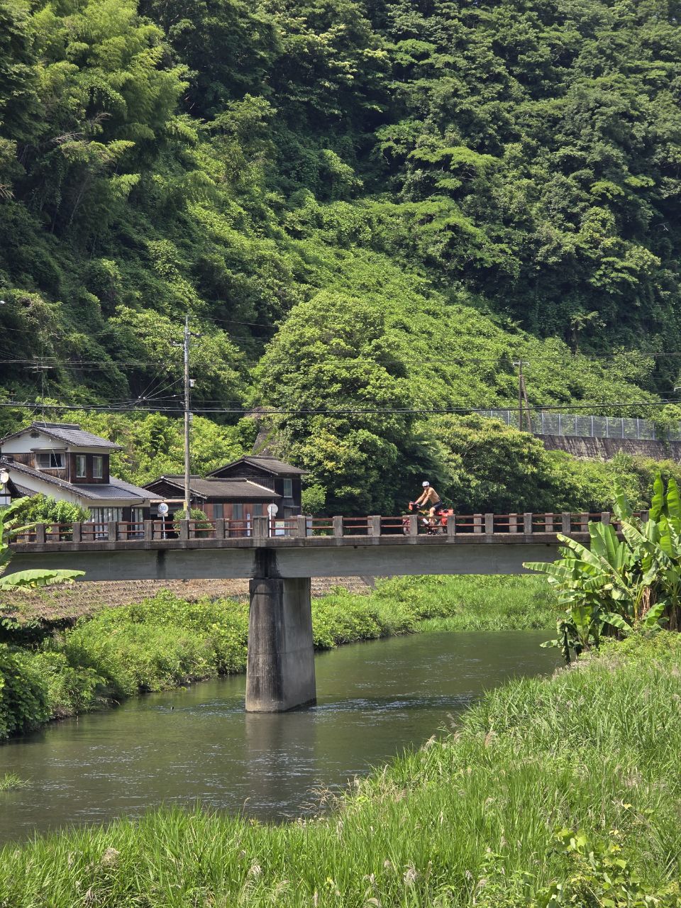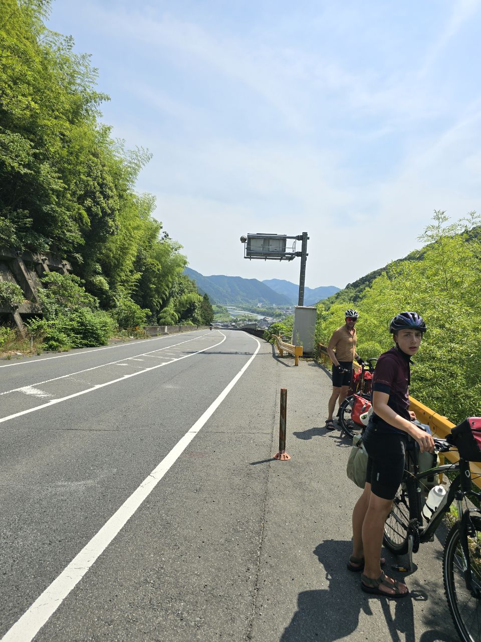 Les journées se suivent et se ressemblent: la chaleur écrasante, le dénivelé toujours plus important, la difficulté...Durant toute la matinée, nous roulons sur une nationale très fréquentée. Le bruit des poids lourds qui nous dépassent est assourdissant, la poussière et la pollution se collent à nos corps transpirants, une vrai partie de plaisir!! La plupart du temps, nous roulons sur une sorte de trottoir partagé entre piétons et cyclos ce qui nous permet de rouler en sécurité. L'ennui c'est que ce bord de route est souvent mal entretenu, truffé de bosses, nid de poule ou encore envahi par la végétation et que nous avançons plus lentement. En fin de matinée, nous devons traverser 3 tunnels. Le premier dispose d'une partie aménagée sur un des côtés qui nous permet de le traverser en toute sécurité. Le deuxième dispose lui aussi d'une "zone piétonne" étroite sur laquelle nous nous engageons et qui nous permet de traverser tant bien que mal sauf Manu dont le vélo est plus large et qui frotte tout le long contre la paroi! Le troisième tunnel , long de plusieurs kilomètres, n'a aucun aménagement et est faiblement éclairé. Nous nous y engageons avec anxiété, lumières enclenchées et pédalons à vive allure! Si la plupart des automobilistes Japonais sont respectueux et nous dépassent en faisant un grand écart, d'autres ,dont principalement des camions nous frôlent dangereusement en nous dépassant. Nous n'en menons pas large et pédalons de toutes nos forces! Rendus euphoriques par la décharge d'adrénaline de cette traversée périlleuse, nous exhaltons en arrivant de l'autre côté! Nous sommes soulagés d'être sains et saufs, d'être en vie tout simplement !!! L'après-midi est plus tranquille, nous longeons une rivière bordée de forêt de bambous pour rejoindre l'embarcadère qui nous permettra de rejoindre l'île sacrée de Miyajima sur laquelle nous passerons la nuit et la journée de demain! Nous arrivons peu avant le coucher du soleil et nous sommes accueillis par les daims qui règnent sur l'île et par le fameux Torii flottant du sanctuaire d'Itsukushima! Grosse journée de vélo encore aujourd'hui puisque le compteur affiche 81 kms pour quasiment 1000m de D+! C'est étonnant de voir à quel point nos corps s'adaptent à l'effort physique quasi quotidien que nous lui imposons. Malgré le nombre de kilomètres et le dénivelé, nous finissons notre étape à 16h!!