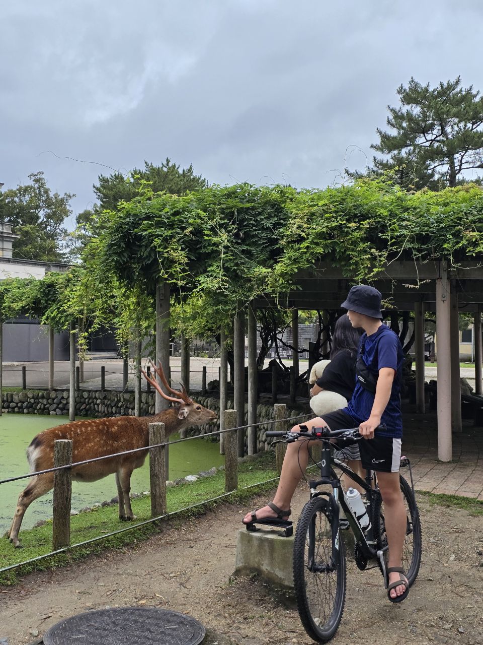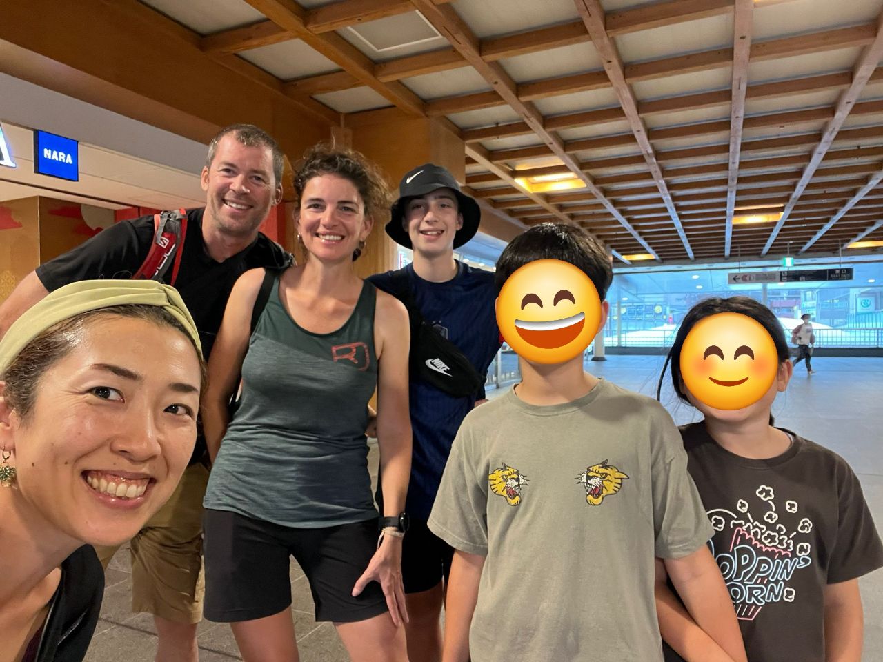 Voilà une bonne semaine que nous jouons au chat et à la souris avec la pluie. Jusqu'à maintenant, nous avons été assez chanceux, les journées les plus pluvieuses étant sur des jours "off". Malheureusement, de fortes pluies sont annoncées sur les 2 prochains jours et il va nous falloir rouler quand même...Nous prenons donc la route avec les K-way qui nous protègent de la pluie mais dans lesquels nous transpirons assez rapidement. Les choses se corsent quand nous commençons à grimper (nous avons une montagne à franchir !) et nous finissons par enlever les K-way puisque nous sommes aussi trempés dedans que dehors! Il faut dire qu'il fait 27 degrés et que le taux d'humidité avoisine les 85%! La journée est d'autant plus difficile que nous sommes tous les 3 victimes d'une tourista et nous arrivons à Nara avec soulagement après plusieurs arrêts aux toilettes des conveniences stores! Nous y retrouvons Nami et ses 2 enfants. Nami est d'origine Japonaise et est professeure de musique dans une école de Genève. Elle passe actuellement 6 mois au Japon avec ses enfants et a créé une association afin de promouvoir, développer et transmettre la culture traditionnelle Japonaise au plus grand nombre, enfants et adultes de Genève et d'ailleurs. Son projet, actuellement en crowdfunding est à retrouver en cliquant sur le lien suivant: https://for-good.net/project/1000718
