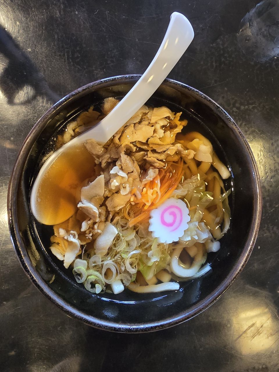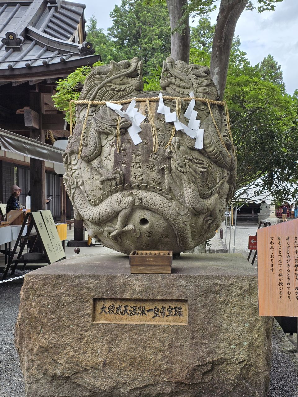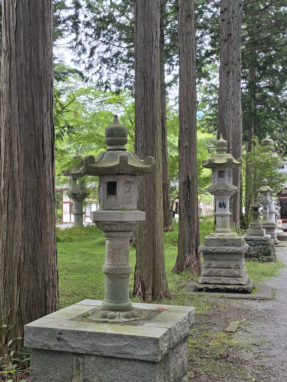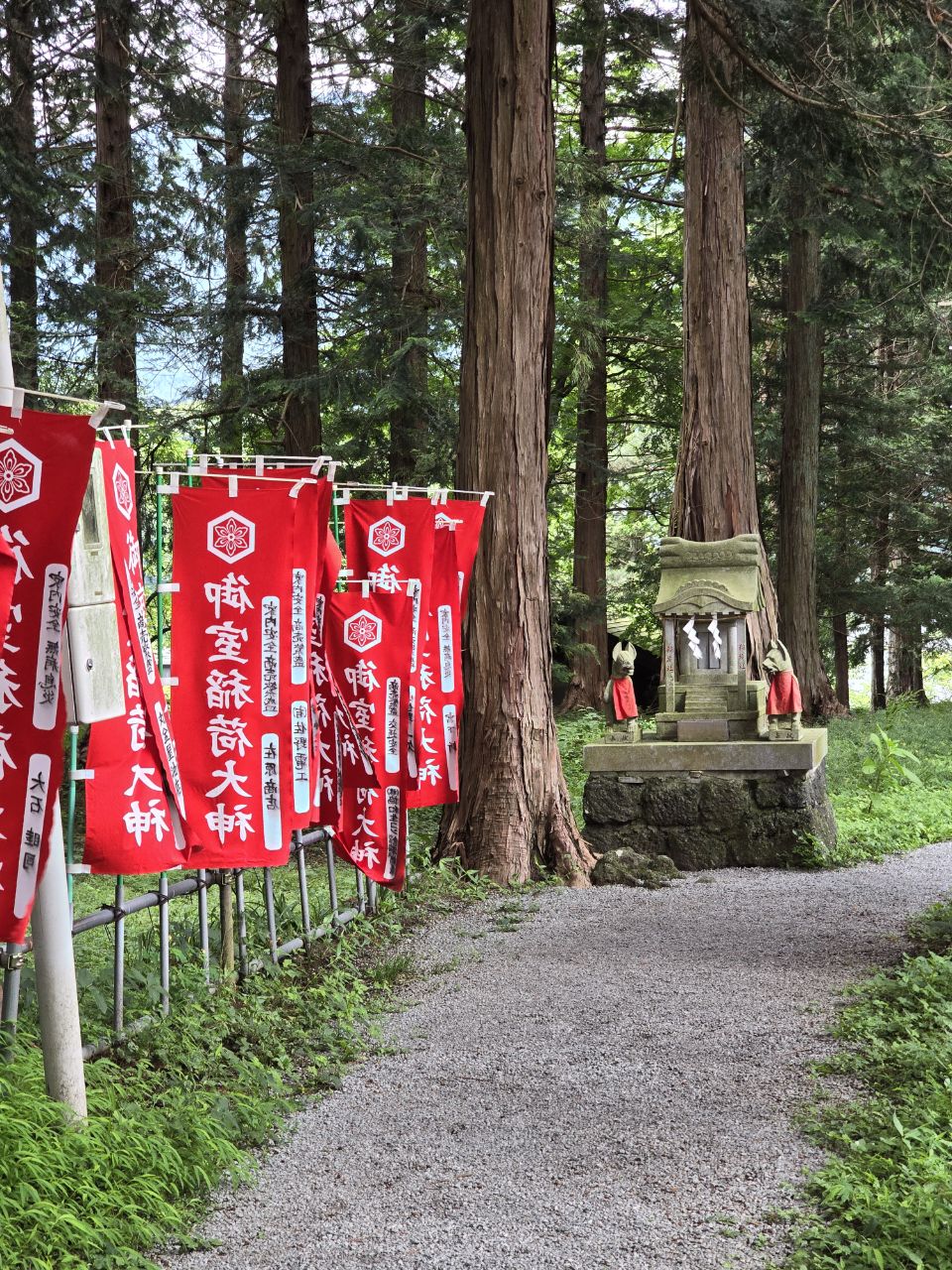 Voilà déjà 3 jours que nous sommes arrivés au pied du Mont Fuji! Le lendemain de notre arrivée, nous avons profité de la proximité de notre guest house avec le lac Kawaguchiko pour en faire le tour à vélo! Sur la route, nous avons croisé un joli temple peu fréquenté , une bonne raison de nous octroyer une petite pause! L'après-midi, nous chargeons les vélos pour rejoindre la ville de Fujiyoshida qui sera notre lieu de séjour pour les prochaines nuits. Tout ici est à l'effigie de la montagne sacré "Fuji-san": les plaques d'égouts, les verres au restaurant, les cônes de signalisation...Hier, il a plu à torrent toute la journée, une bonne excuse pour ne rien faire et récupérer de notre dernière étape ! Seule sortie de la journée : le centre commercial tout proche pour faire quelques courses et un arrêt dans un magasin d'articles de sports pour acheter des "rinko bag". Ce sont des sacs de transport pour vélos et ils sont indispensables au Japon pour pouvoir prendre le train ou même le bus avec son vélo. Même si seuls 120 kms nous séparent de Tokyo, nous préfèrons être prévoyant et équipés pour prendre le train si un des vélos devenait inutilisable. Il nous servirons ensuite pour emballer les vélos avant de prendre l'avion ce qui devrait les alléger et nous éviter de payer trop d'excédent de bagages! Nous en profitons aussi pour déjeuner dans un petit restaurant typique qui propose la spécialité de la région: les nouilles Udon! Ce sont en fait de grosses nouilles de blé baignants dans un bouillon à base de sauce soja et de miso et agrémentées de tofu fris, viande émincée, légumes divers selon la commande. Rassasiantes et savoureuses, c'est une belle découverte! Aujourd'hui, nous avons profité d'une météo plus clémente pour visiter la pagode Chureito, perchée sur les hauteurs d'un parc et qui bénéficie d'une vue imprenable sur le mont Fuji. Malheureusement pour nous, il ne se dévoile pas facilement et se cache derrière une épaisse couche de nuages. Nous poursuivons avec le splendide sanctuaire Kutaguchi Hongû Fuji Sengen-jinja. On y accède par une grande allée de cyprès du Japon et de cèdres centenaires . Des tôrô, lanternes de pierres recouvertes de mousse, accompagnent solennellement la progression vers le sanctuaire. Rien que ce moment est déjà magique, empreint d’une grâce toute Japonaise. Puis on arrive devant le grand torii rouge, le plus grand du Japon, 17m de haut! Derrière, sur le côté droit, après un petit torii en pierre et un autel, un chemin se dirige vers le sud en direction du Mont Fuji. Celui-ci n’est autre que le sentier historique de Yoshida Trail pour rejoindre son sommet. Le sanctuaire du Kitaguchi Hongu Fuji Sengen est traditionnellement considéré comme le début du pèlerinage vers le Fuji-san même si aujourd'hui la plupart des randonneurs partent de la 5ème station ce qui diminue de temps de montée (compter tout de même 6h minimum). En fin de journée et alors que nous sommes sur le point de rentrer à l'hôtel, le mont Fuji nous fait l'honneur de se dévoiler enfin....une apparition furtive puisque 30 mn plus tard il est de nouveau dans les nuages!