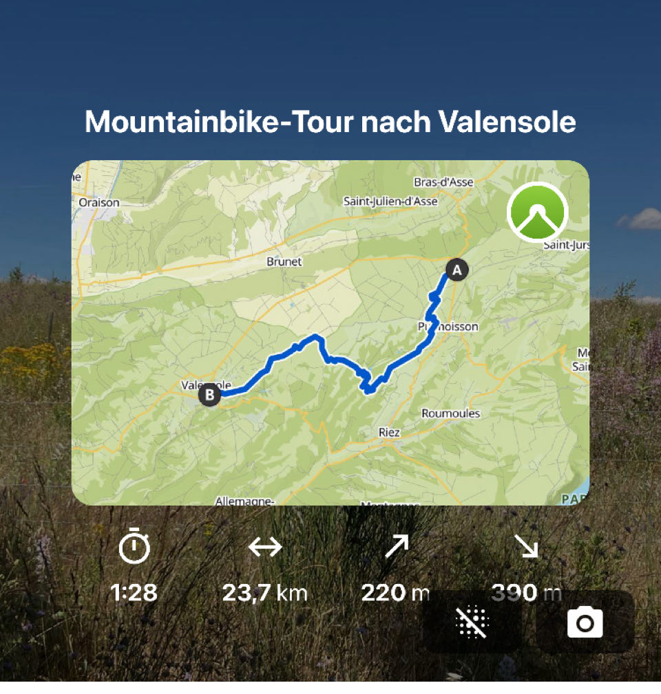 Am Nachmittag noch eine ziemlich verrückte bike Tour nach Valensole gemacht. Mit viel groben Schotter, Sumpfloch und wieder steiler Anstieg auf groben Schotter.