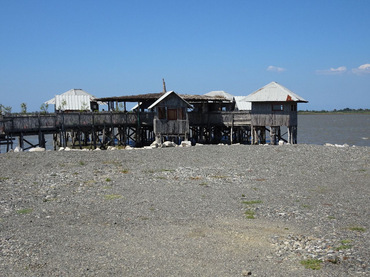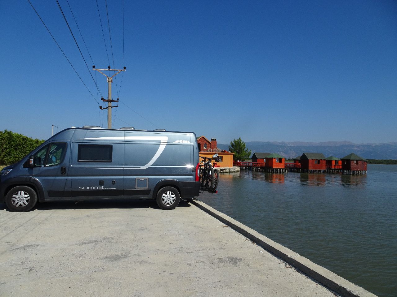 Auf der Weiterfahrt und nach der vergeblichen Suche nach einem "sehenswürdigen Strand", sind wir auf Erkundungstour gegangen und haben mal wieder ein Restaurant gefunden... Gebaut auf Stelzen, in einer Wattlandschaft. Nach dem köstlichen Essen im Restorant Gesi (JHQV+VV Patok, Albanien) bemerkten wir leider, dass unser Radträger schief hängte. Ohne den genauen Grund zu kennen, fuhren wir nach einer Sicherung der Ladung zum geplanten Ziel in Kruja.