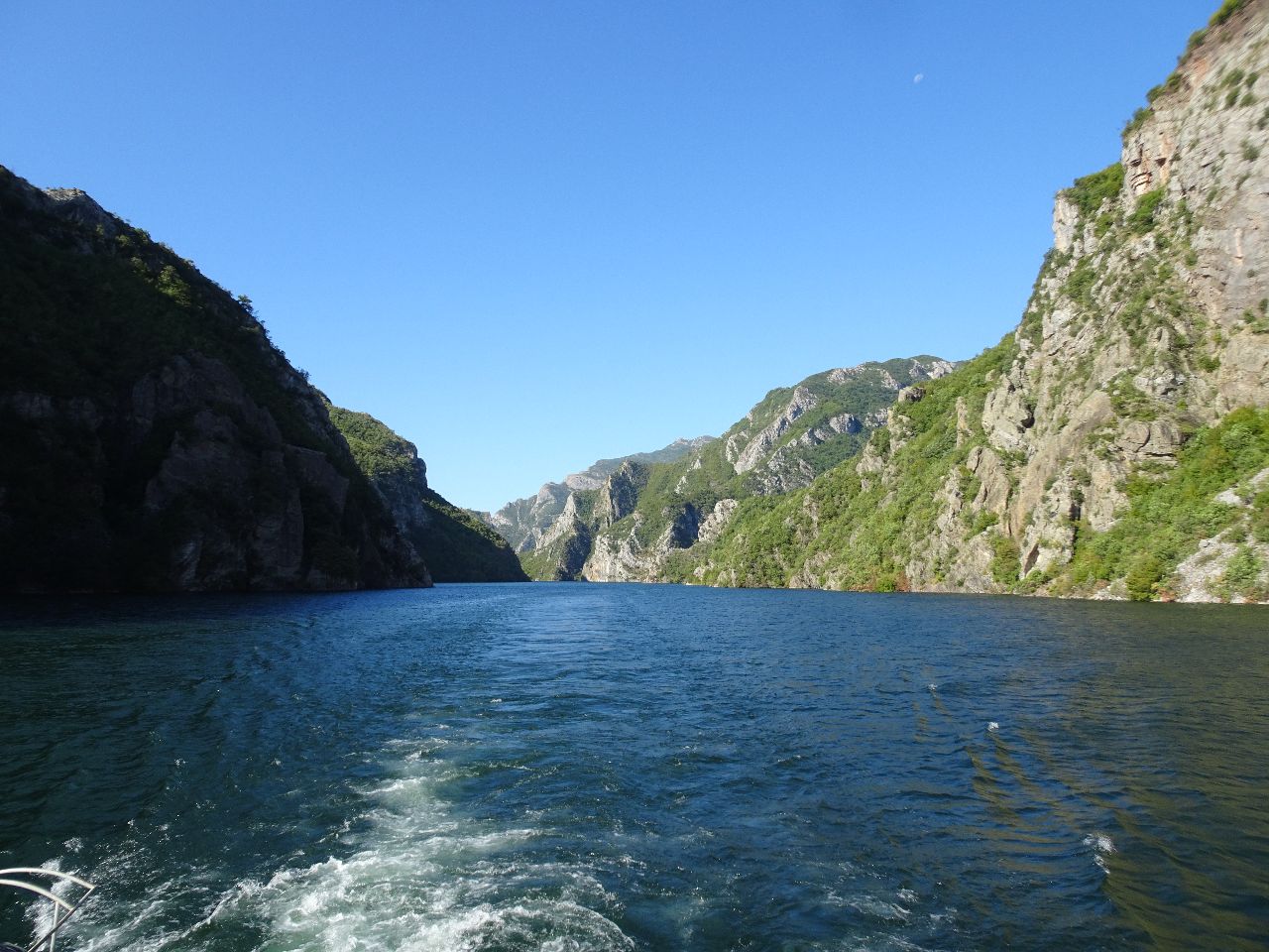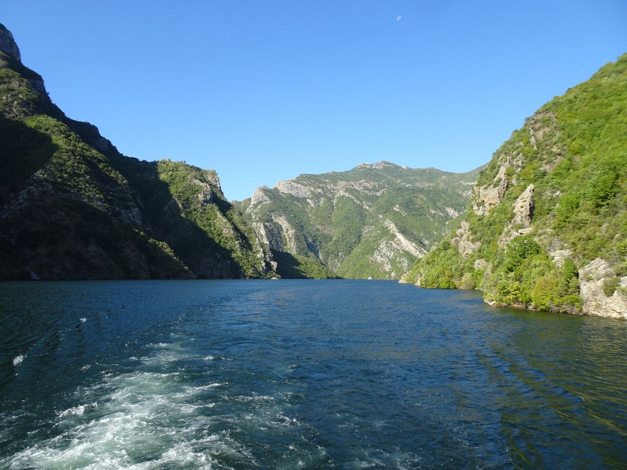 Nach einer Übernachtung in Shkodra, früh am Morgen zum Koman Stausee aufgebrochen um mit der Fähre nach Fierza und letztlich nach Valbona zu fahren.