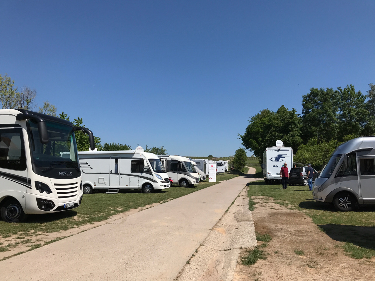 Stellplatz bei Weingut Geiger. Großer, gut ausgestattet Platz. Dusche etc. wegen Corona-Massnahmen geschlossen.