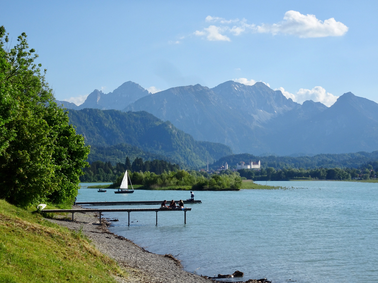 Heute von Kempten in Richtung Füssen weitergefahren. Nachdem am Weißensee kein freier Parkplatz zu finden war, ging’s weiter nach Füssen. In der Nähe von Schwangau fanden wir dann überraschend einen Platz.