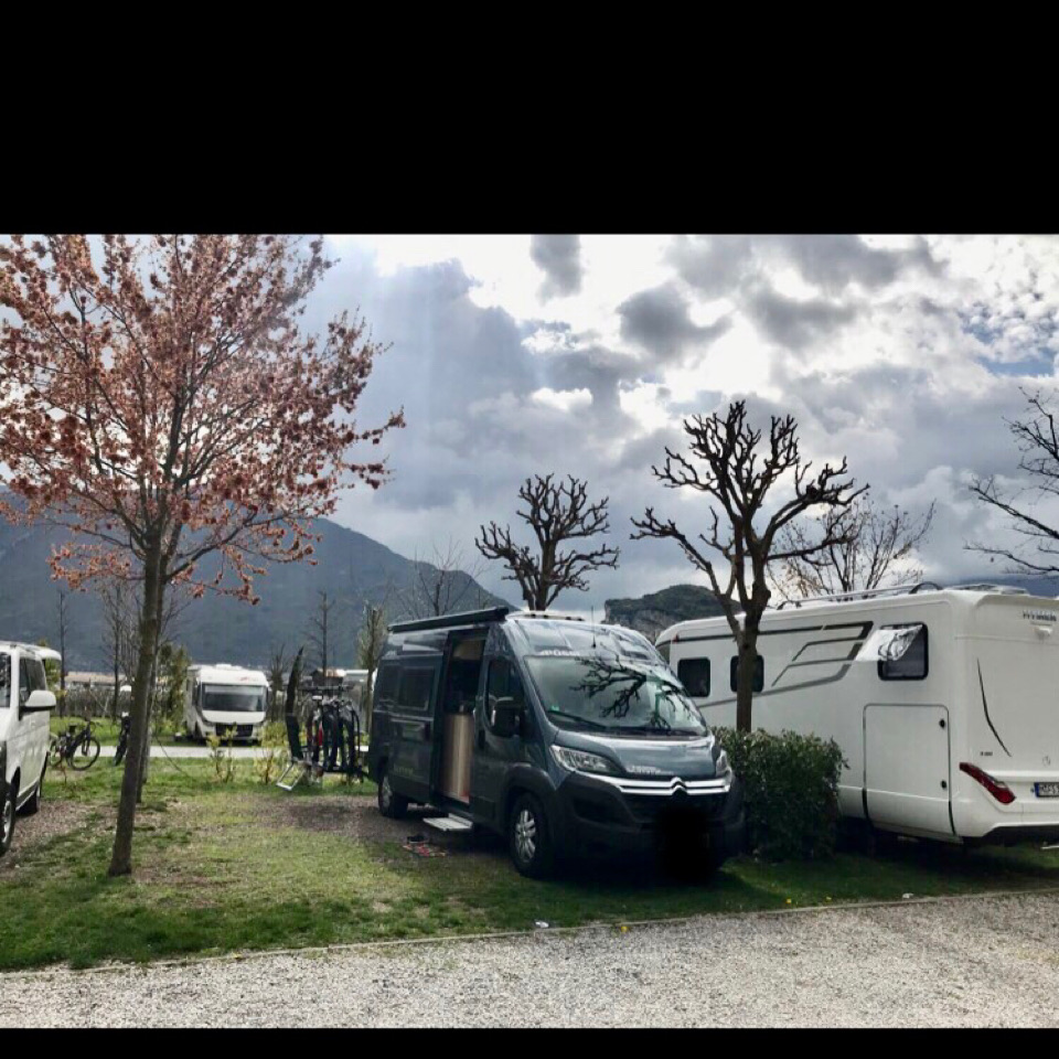 Mit Glück noch einen Stellplatz ergattert. Und der Platz zwischen Arco und Riva ist super!