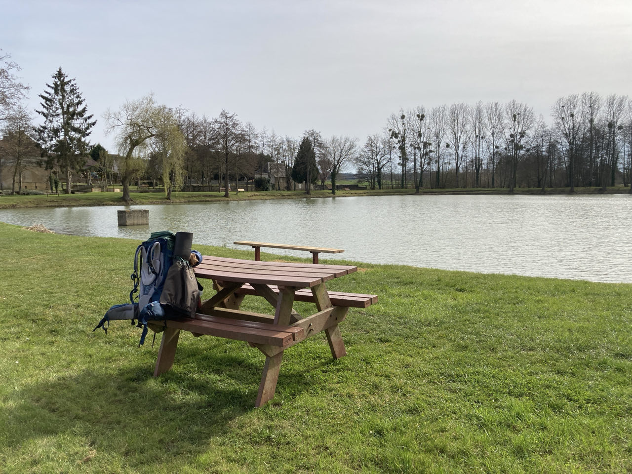 Jâai marchĂ© jusquâĂ Saint-Maurice-lĂšs-Charencey oĂč jâai dĂ©jeunĂ© devant lâĂ©tang. Il Ă©tait dĂ©jĂ 15h et jâai Ă©tĂ© tentĂ©e de mâarrĂȘter au camping, tout prĂšs de la route bruyante. Par facilitĂ©, par manque de motivation, le moral toujours dans les chaussettes. đ§Š Et puis je me suis dit que non, allez, jâallais dormir dans la forĂȘt, que jâavais besoin de calme et du chant des oiseaux. đł Jâai pris 2 litres dâeau au robinet et je suis partie.