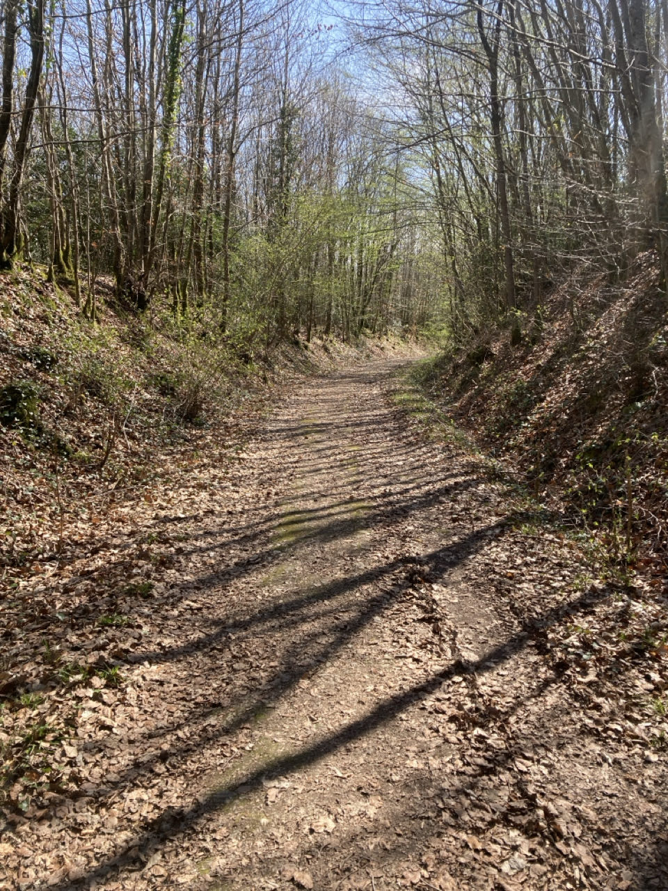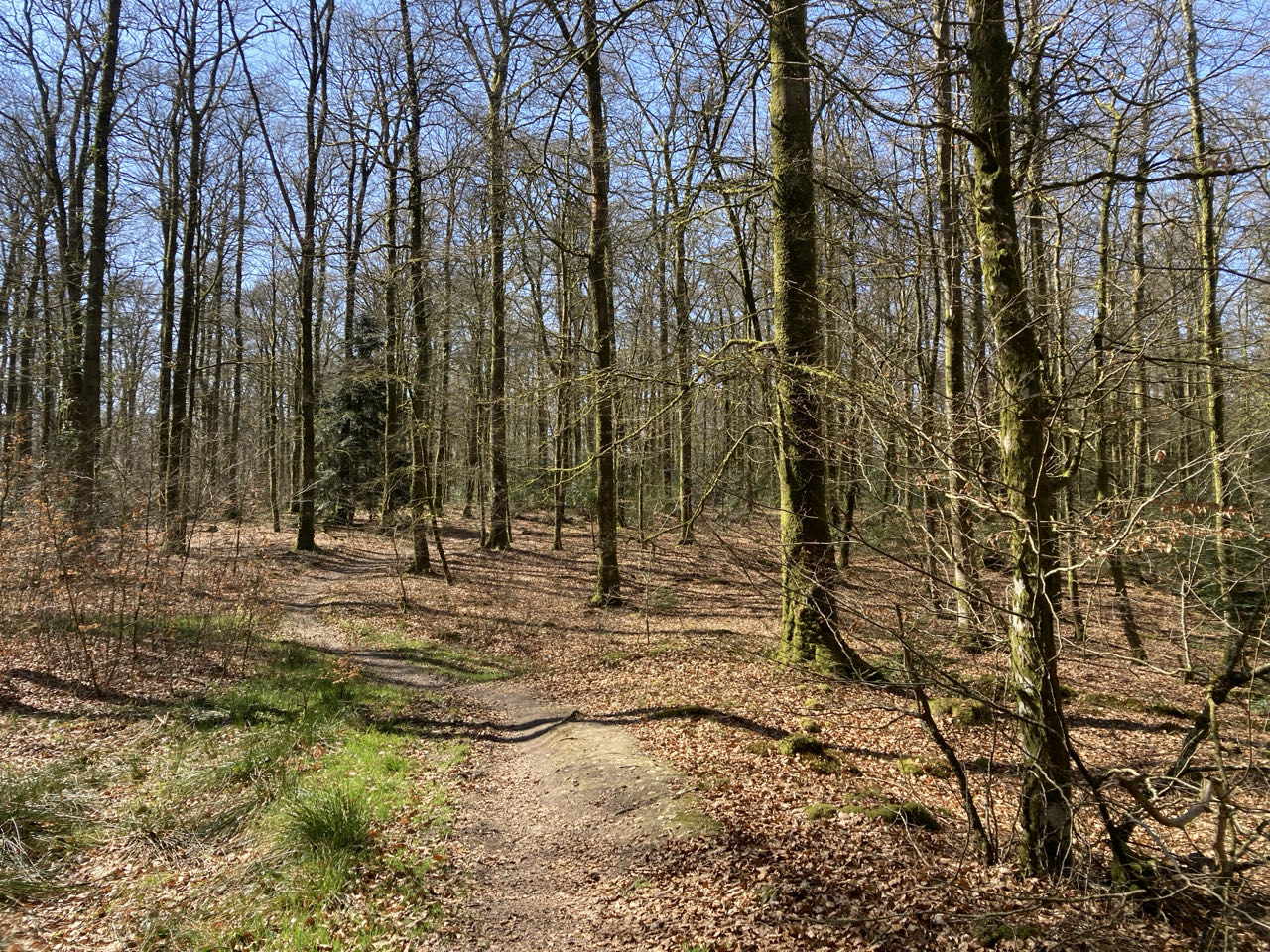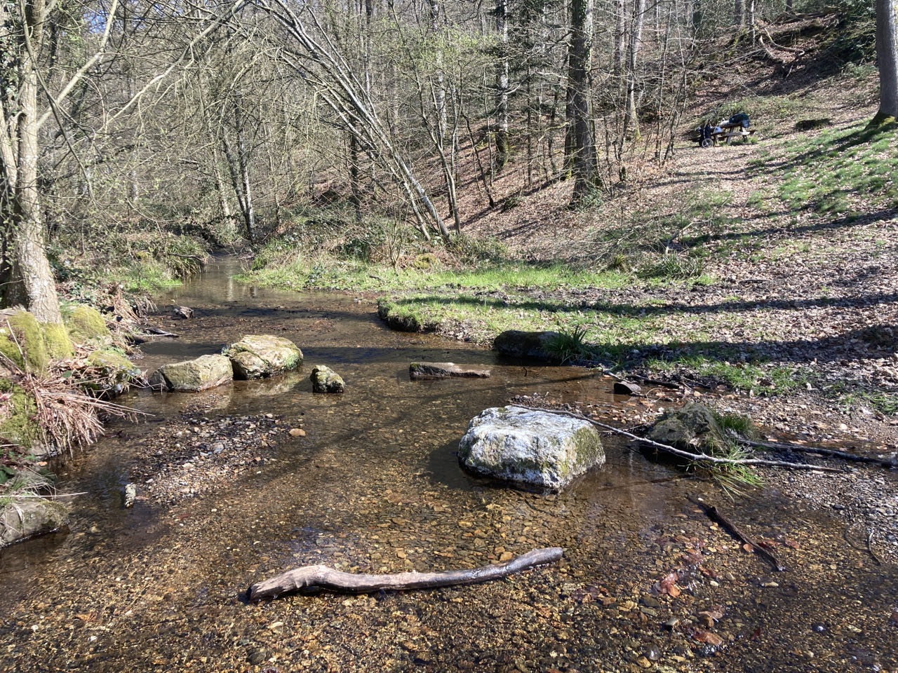 La forêt de Perseigne est étonnante, toute en relief avec des vallons et des cours d’eau. Ça monte et ça descend mais les chemins ne sont pas trop compliqués avec la chariotte. C’est agréable de s’y balader 😊 Je me sens bien cet après-midi.