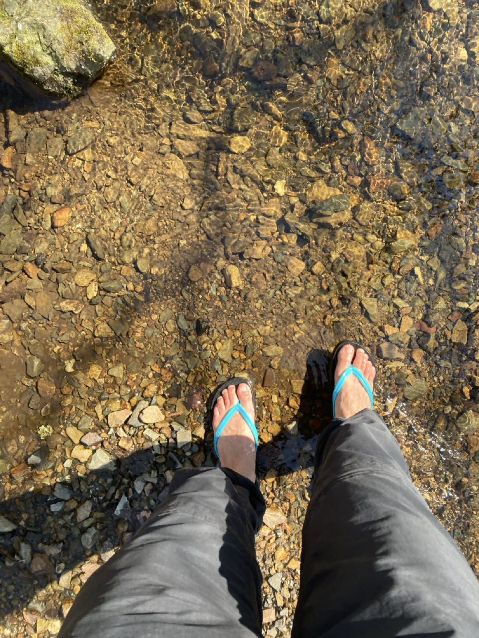 C’est très très froid mais je suis très très contente. C’est la première fois de l’année que je mets les pieds dans l’eau ! 💦