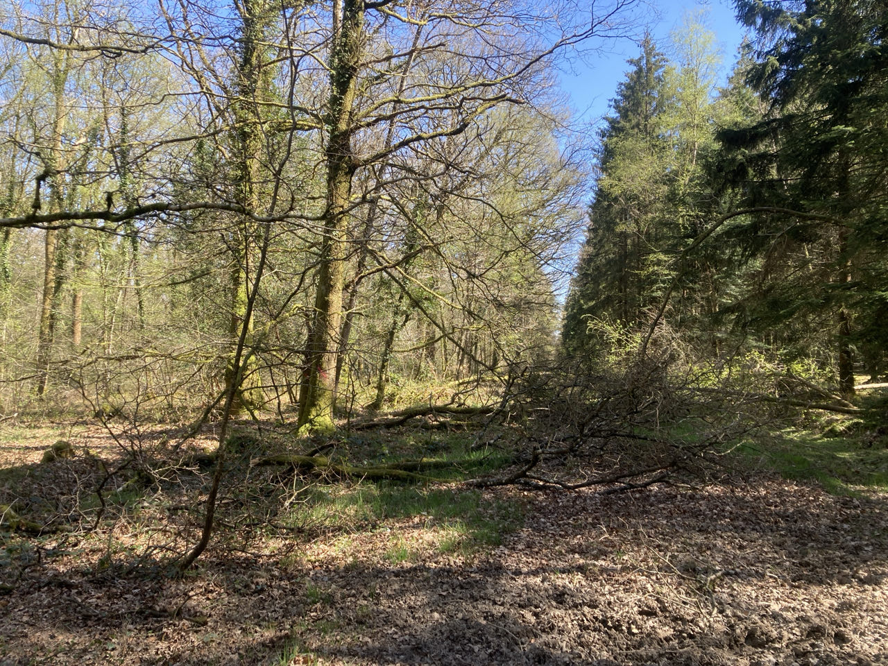 15h30. Je galère sur des chemins avec des arbres couchés… Détours hors sentier obligatoires !