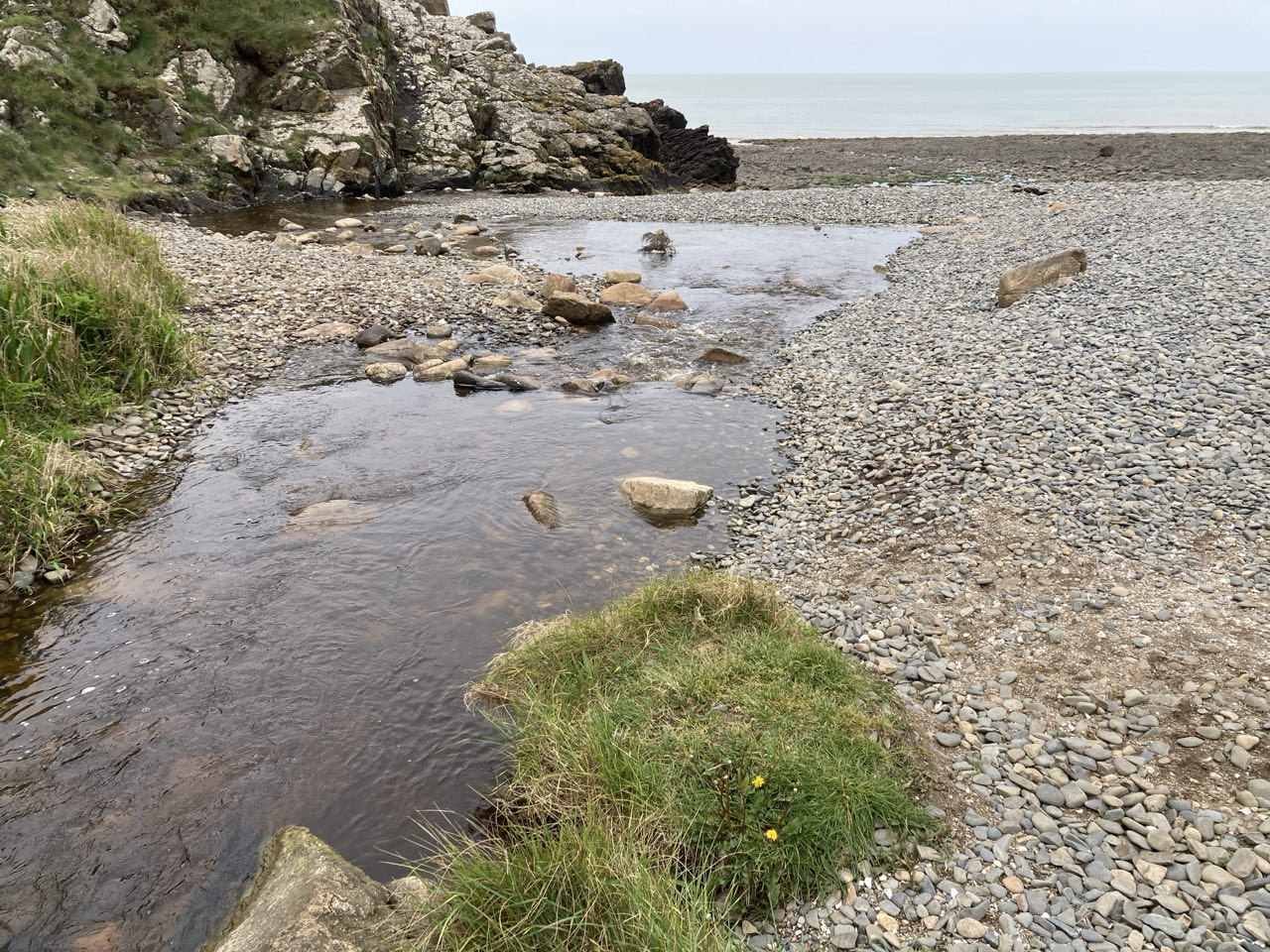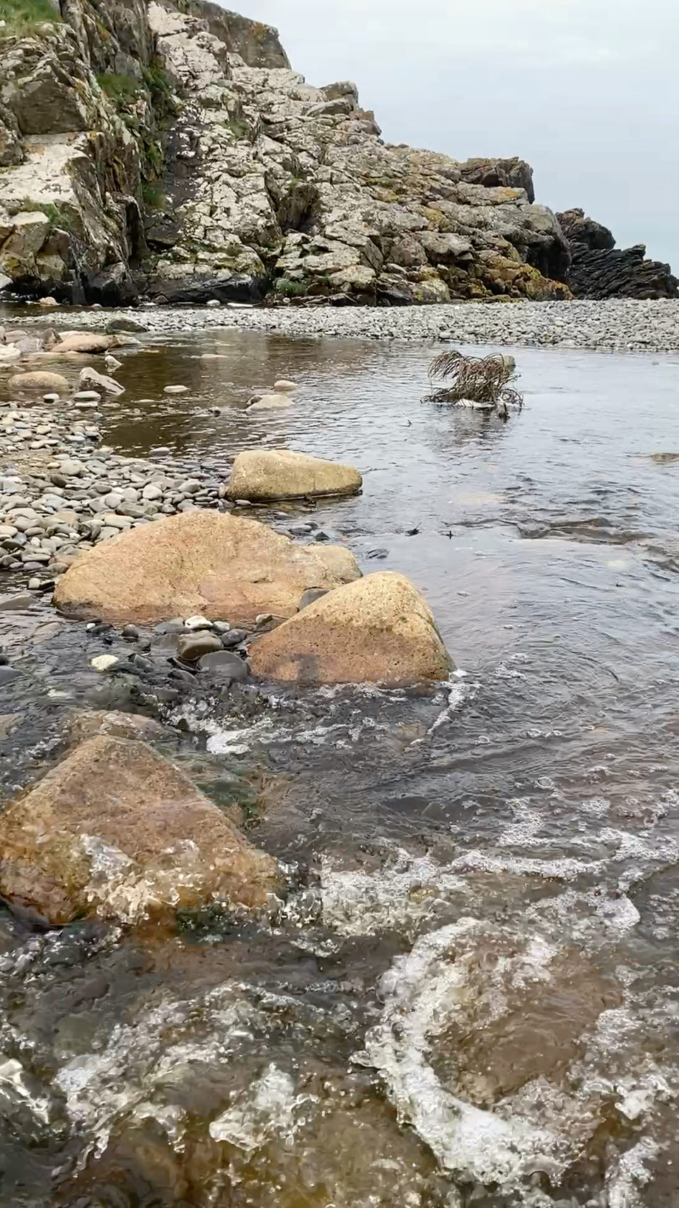 🖇️ La ribambelle de Marianne à Lengronne : pierre en plâtre. C’est le dernier moulage d’une série de pierres ramassées un peu partout, moulées puis fabriquées en plâtre. La pierre d’origine de cette pièce vient de chez Renée chez qui je me suis arrêtée en mars (voir étape jour 15)