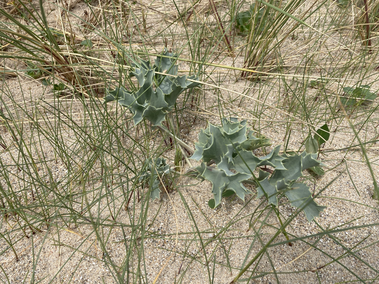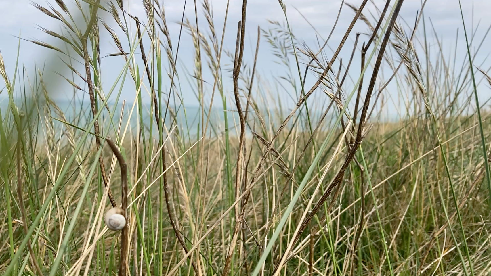 Dans les dunes, les chardons bleus avec ses feuilles épaisses qui résistent au pilonnage du sable ; les thébas, ces petits escargots qu’on trouve en grappe au sommet de la végétation. Ils fuient la chaleur du sable et attendent la nuit pour se déplacer. Les alouettes des champs avec leur petite crête sur le haut de la tête.