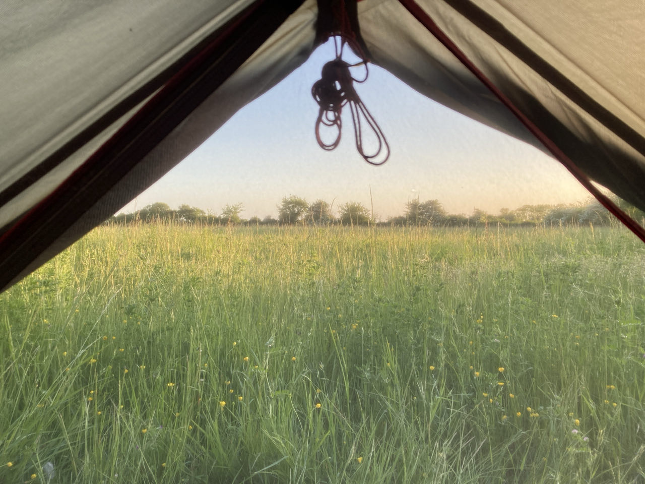 C’est la première fois que je dors dans une prairie depuis mon départ ! Je sens déjà l’humidité arriver… J’ai mis des chaussettes au cas où 🧦 😂