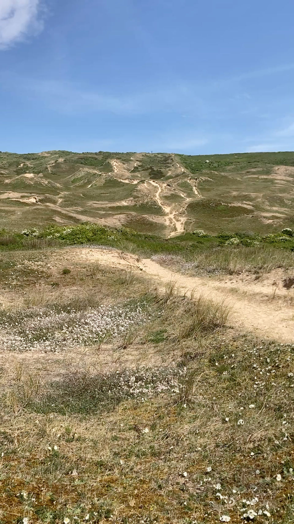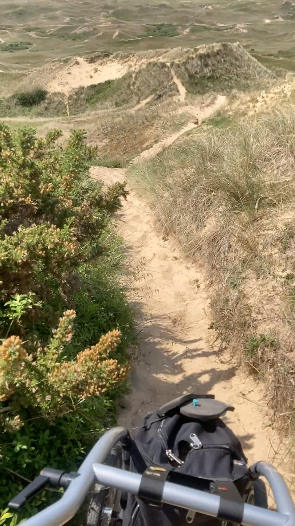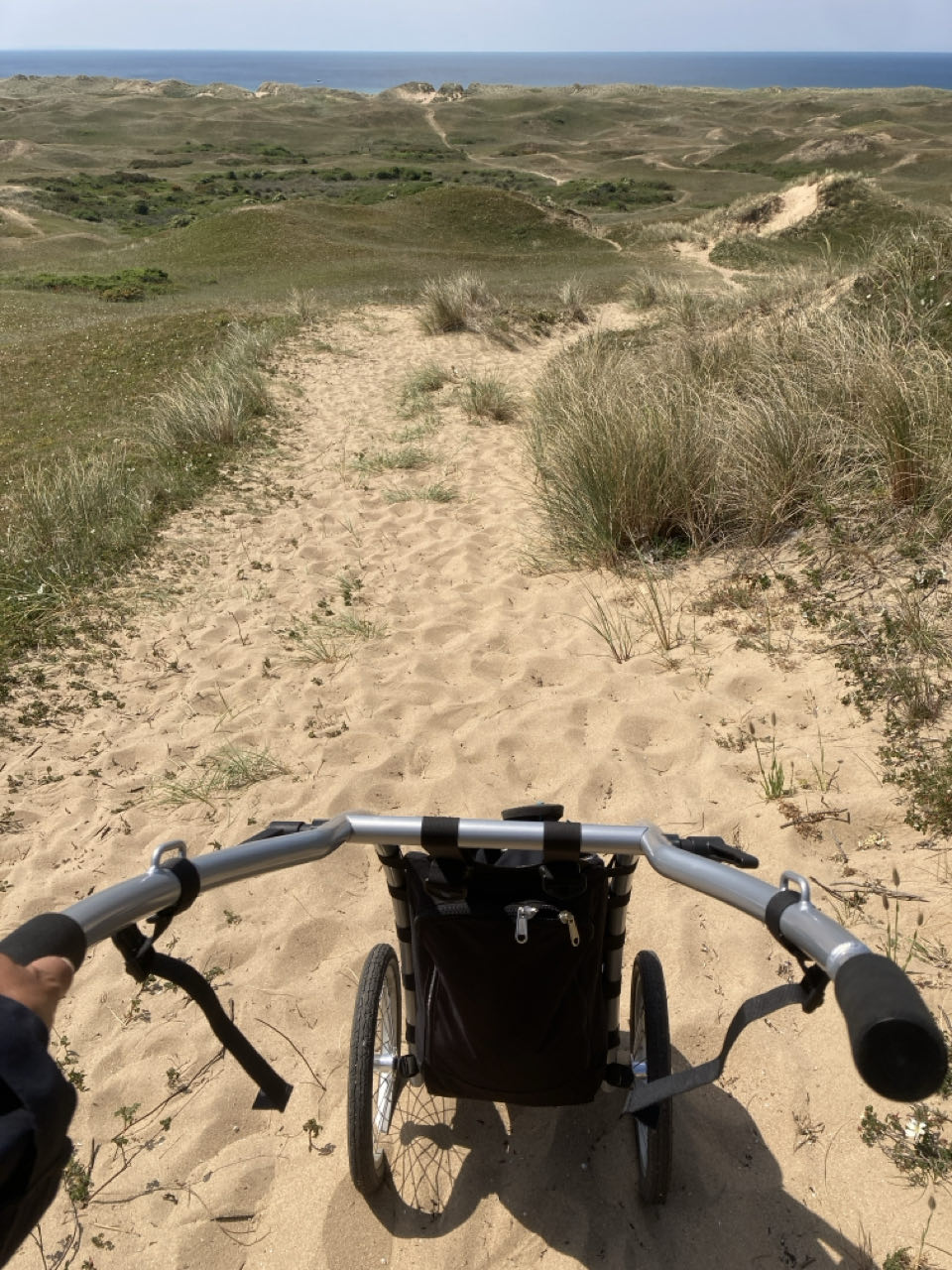 Je n’ai pas pu passer sur le GR avec Rouletab. La flemme de la porter, ça aurait été galère. Du coup, je suis passée par la dune de Biville et j’ai bien fait ! La descente dans le sable mou était marrante. Et j’étais teeeeellement contente de descendre la dune plutôt que de la monter, y’a 100 mètres de dénivelé quand même.