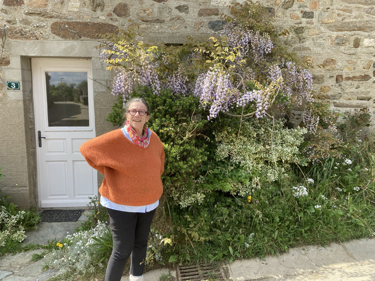Cet aprèm, en passant dans un hameau avant de rejoindre le nez de Jobourg, j’ai rencontré Anne, Loustique et Lakota. Anne m’a invitée à boire un thé et manger une omelette. J’ai faim… Je mange tout le temps ! Il n’y a pas de ravitaillement dans le coin et je m’arrête au resto quand je peux. Sinon, j’ai quelques réserves dans Rouletab mais ce n’est pas génial…!