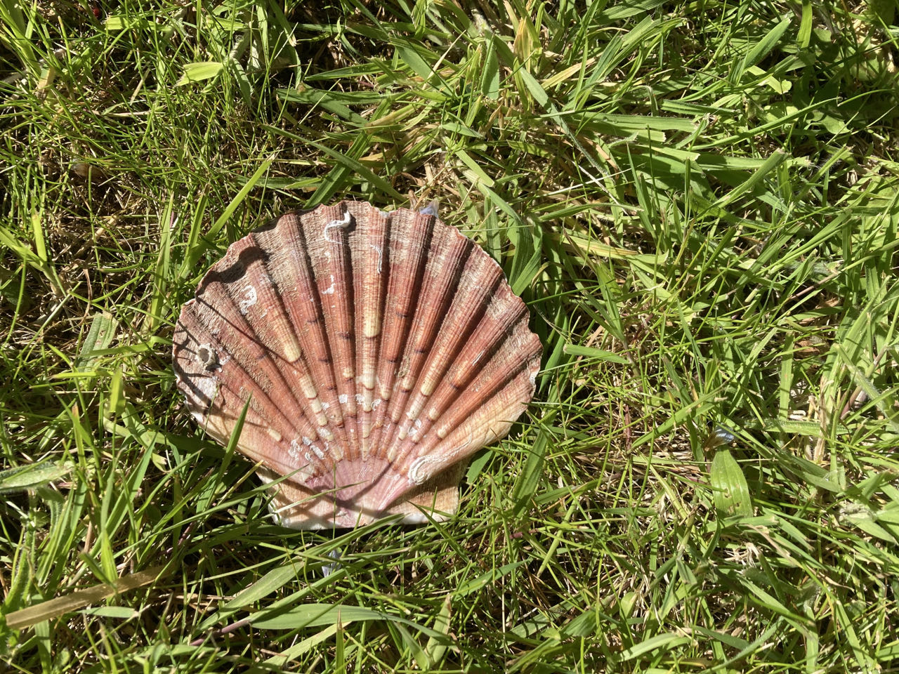 🖇️ la coquille saint jaques de Nicolas laissée par un marcheur qui allait vers Compostelle.
