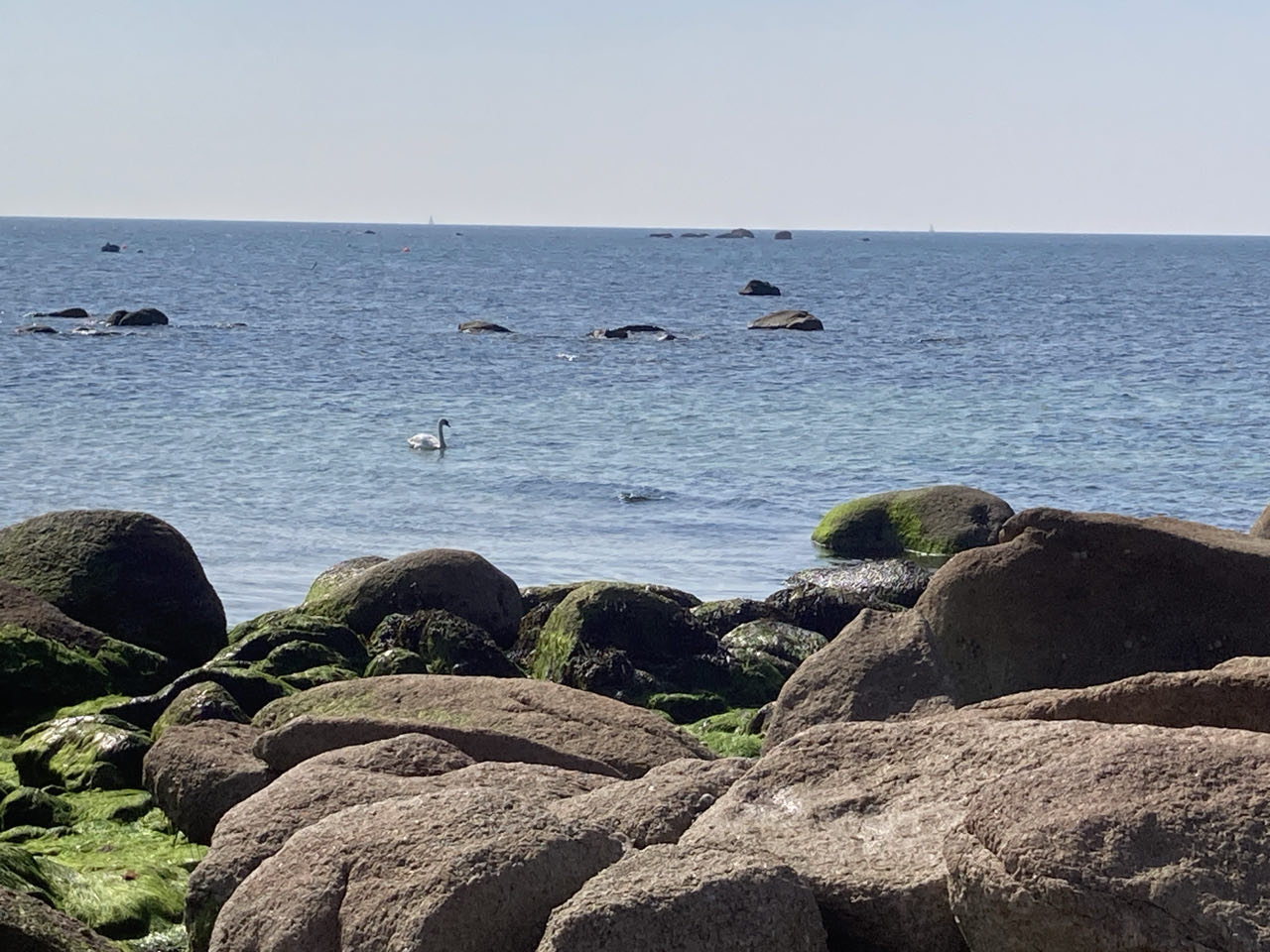 C’est vrai. C’est une autre ambiance. Il y a moins de relief, pas de falaise. Le chemin est au niveau de la mer. C’est moins grandiose, mais c’est aussi plus accessible. Il y a quelque chose de plus accueillant. Ici, le paysage ne s’impose pas et je m’y glisse doucement.