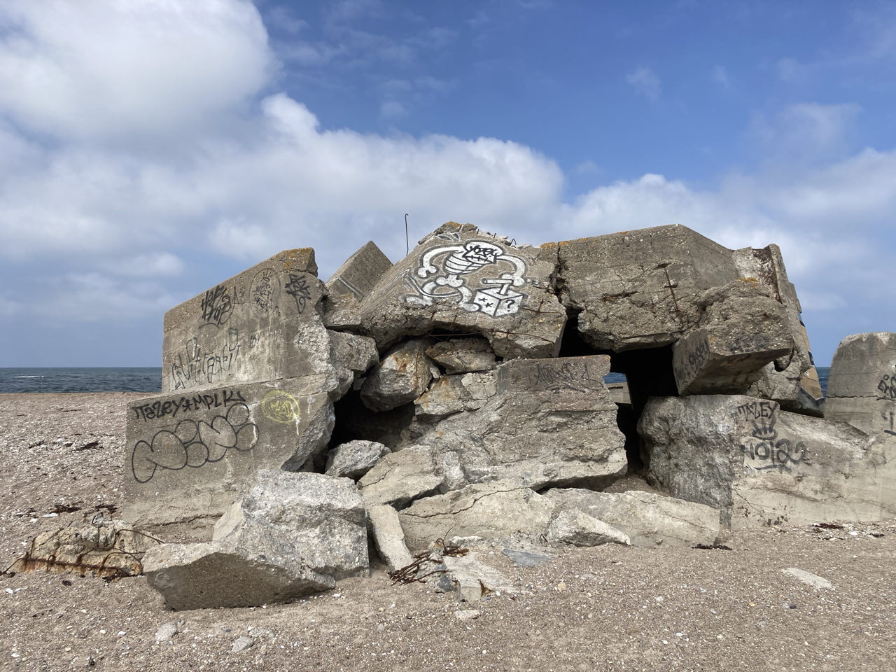 Il y a davantage de blockhaus sur cette côte. Ils tombent en ruines, mais je peux m’abriter derrière pour manger.