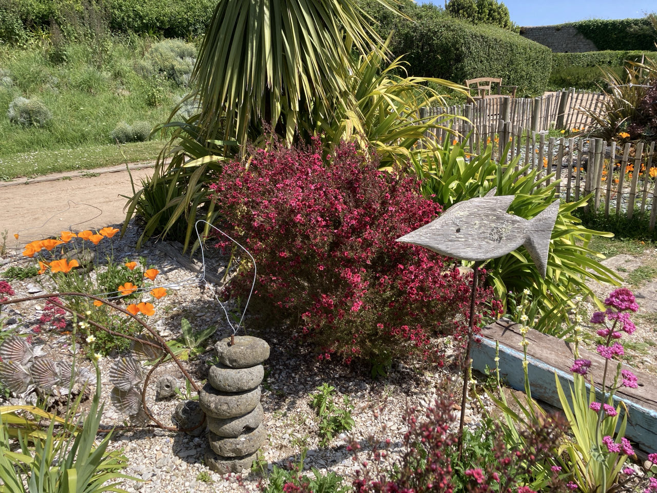 🌿 Dans l’enceinte murée à l’abri du vent, le jardin botanique est superbe, avec des plantes qu’on trouve aussi dans le milieu naturel, et que certain appellent à tort « des mauvaises herbes ».