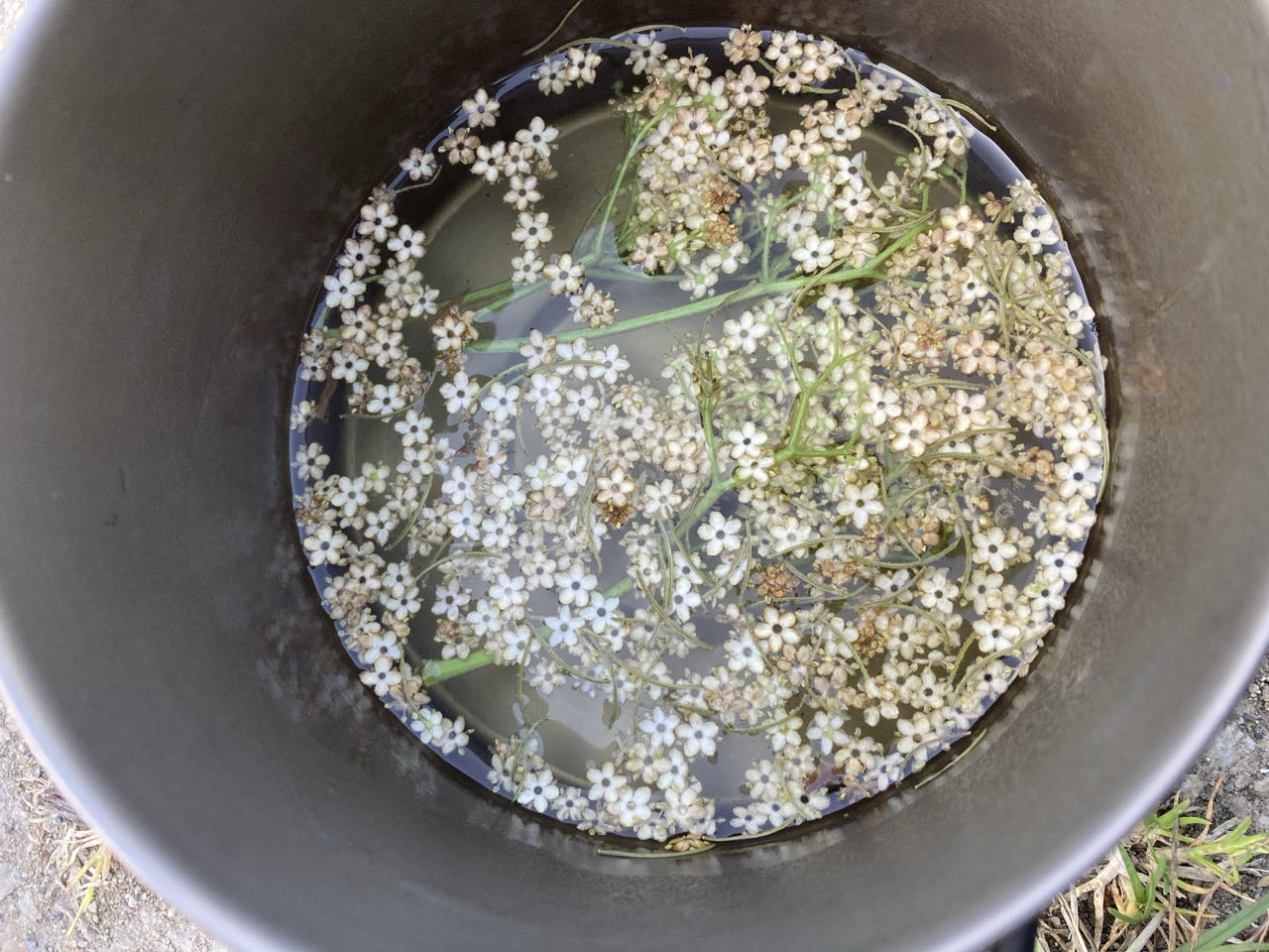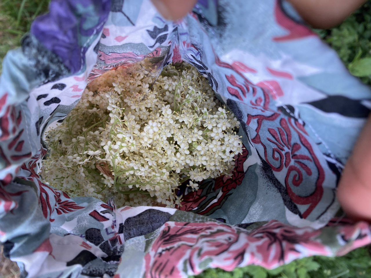 17h15. Je file dans la campagne au milieu des fleurs. Je récolte du sureau noir. Ça tombe bien parce que je n’ai presque plus de tisane !
