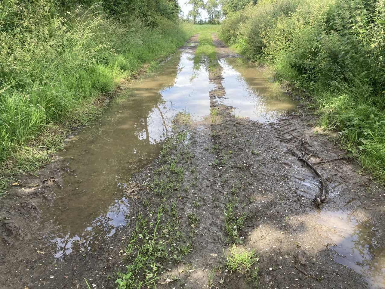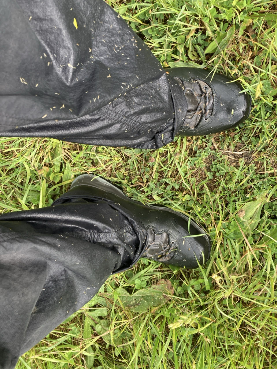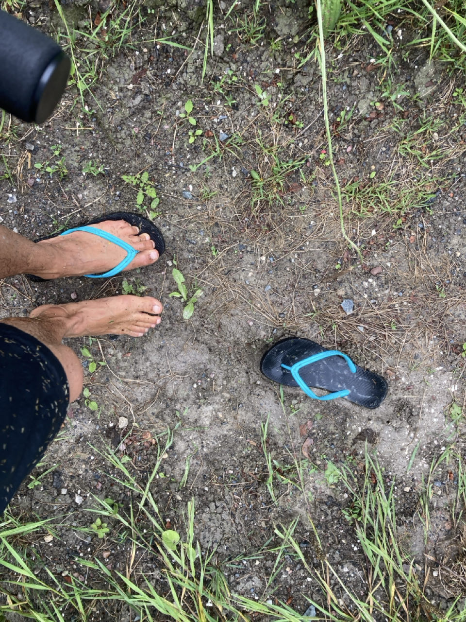 La pluie complique le quotidien, et pas seulement quand il pleut car tout est mouillé : le sol, les chemins, les herbes hautes. Aujourd’hui, j’ai fini par marcher en short et en tongs, voire pieds nus quand je perdais mes tongs dans la boue. L’intérieur de mes chaussures est trempé.