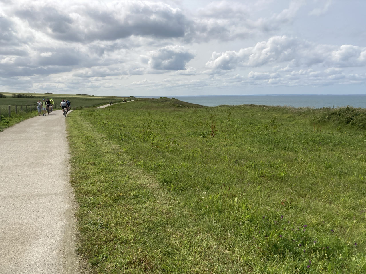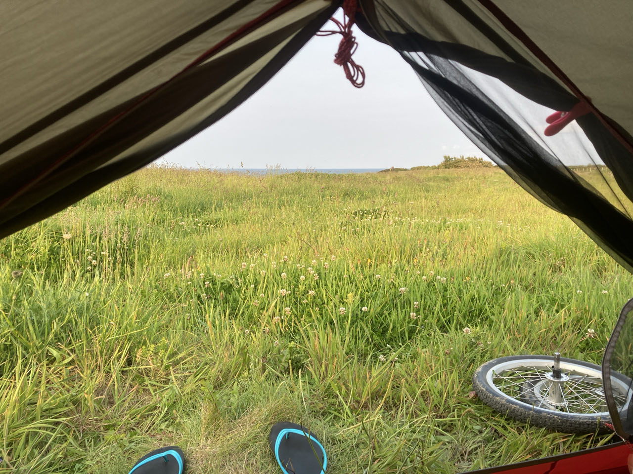 18h. J’ai lâché le GR et j’avance tranquillement sur de longues portions de pistes cyclables. J’ai trouvé un endroit tout près du chemin pour m’arrêter. Je suis à peu près à l’abri du vent. A quelques dizaines de mètres, les goélands et les fulmars profitent des courants d’air. Ils planent élégamment.