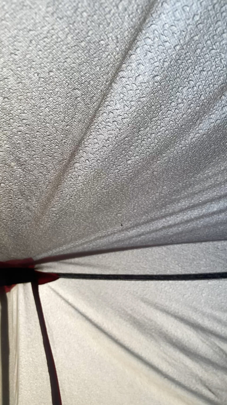 7h15. C’est mon rituel. Tous les matins, j’éponge la tente. Dedans et dehors ! Qu’il ait plu ou non, elle est trempée.