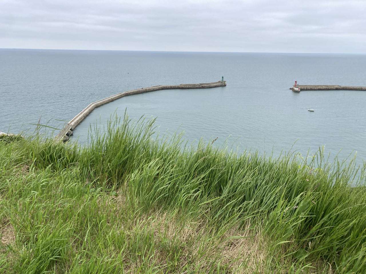 L’arrivée depuis les hauteurs vaut le coup ! J’adore ces petits bourgs avec leurs toits gris et leur port de pêche.