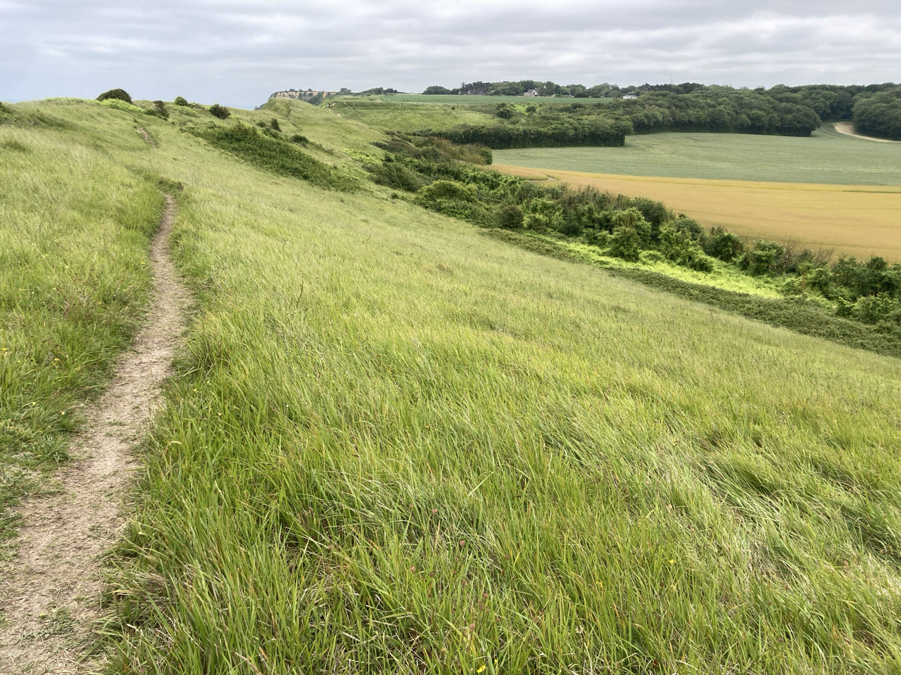 14h. Je quitte le GR pour rejoindre le mont Castel qui domine le port. J’avance dans une superbe prairie recouverte d’orchidées et de graminées. Puis je longe le littoral sur un sentier étroit. Un parcours agréable loin de la foule.