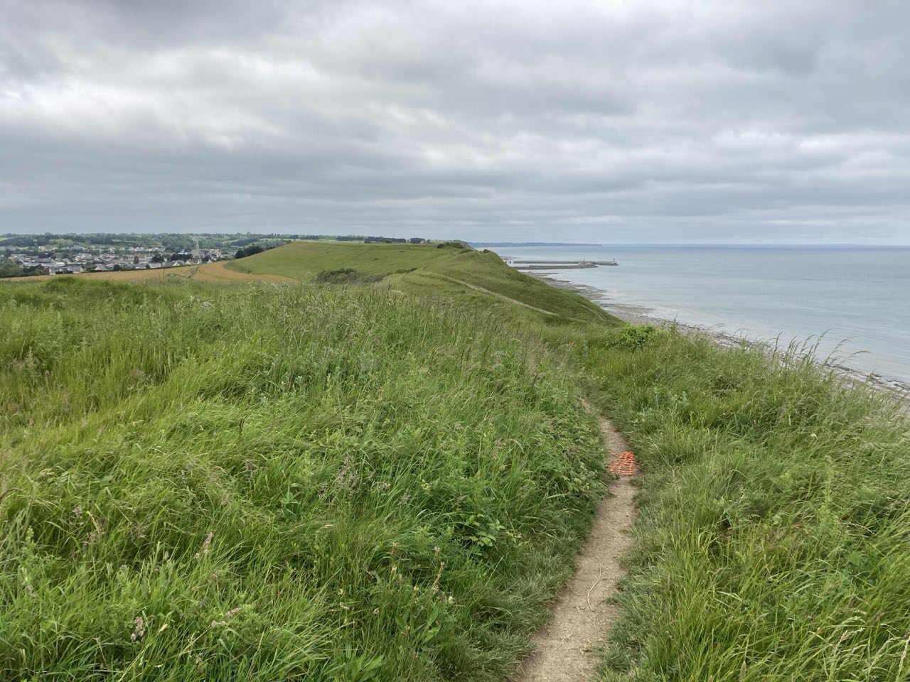 16h. Je dépasse la batterie de Longues-sur-Mer pour descendre la petite route qui zigzague vers la plage. J’y reste une heure alors que la mer descend et découvre l’estran rocheux.