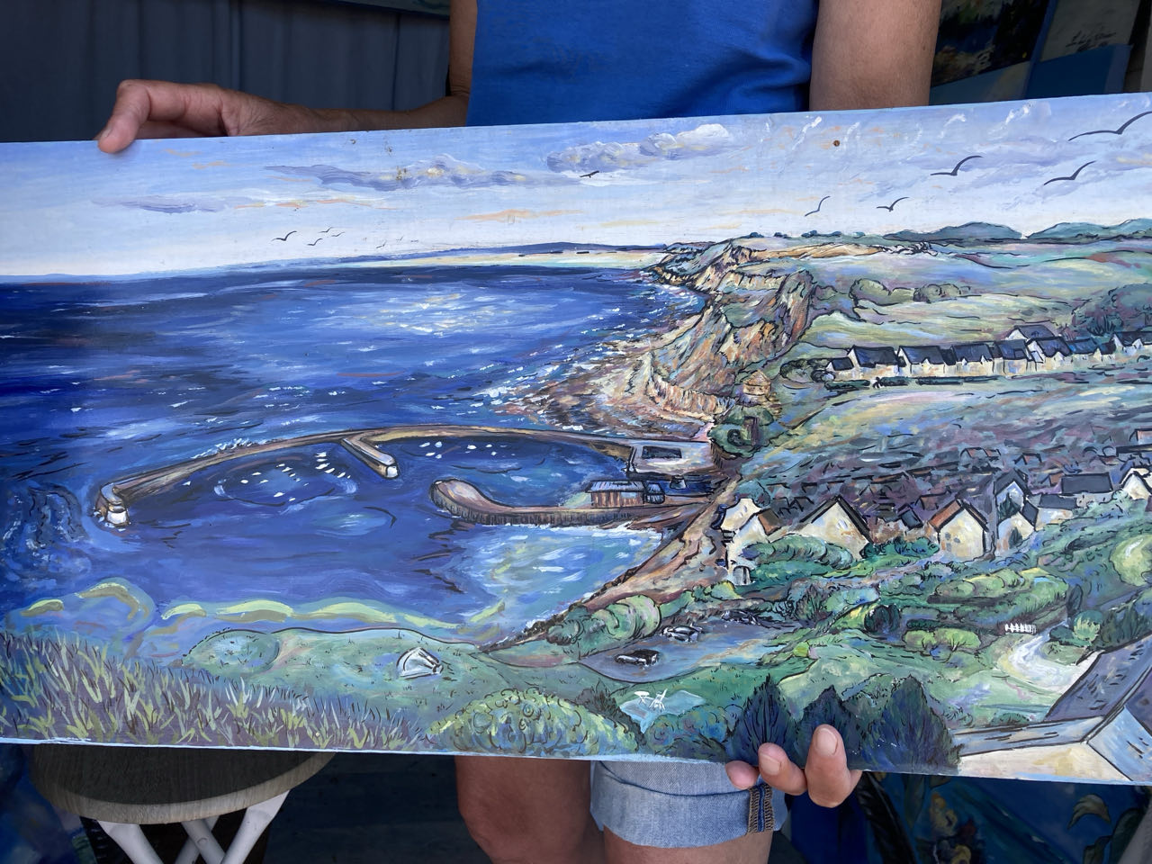 13h. Je croise Emmanuelle dans sa cabane de plage qui lui sert d’atelier de peinture à ciel ouvert.