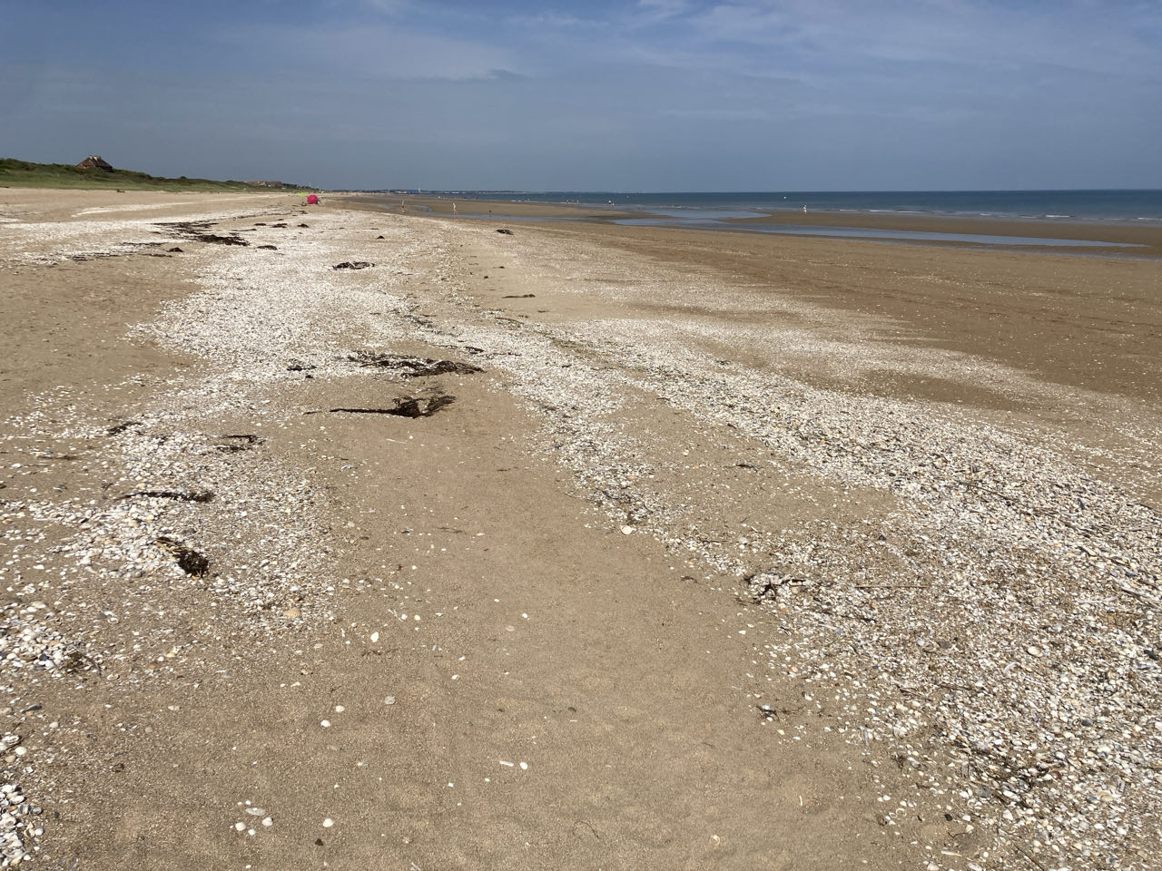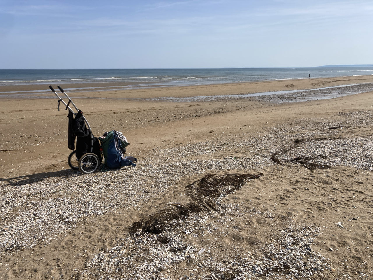 14h30. C’est reparti ! Dives-sur-mer puis Houlgate. J’ai envie de trouver un endroit pour m’arrêter rapidement. J’avance toujours au bord de la mer. Toujours chaud. Toujours du monde. La fête de la musique se prépare et des enceintes envoient de la musique sur la plage.