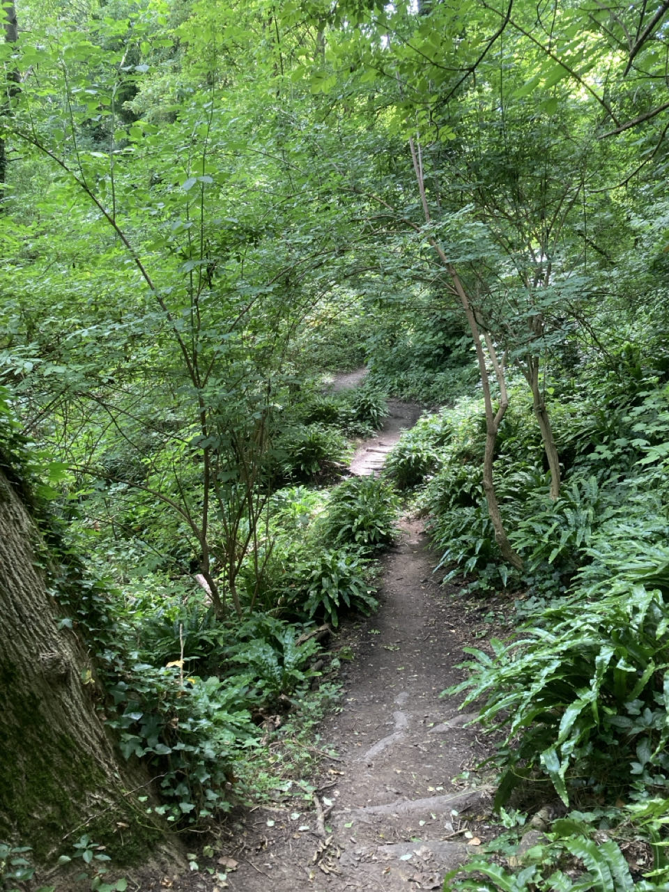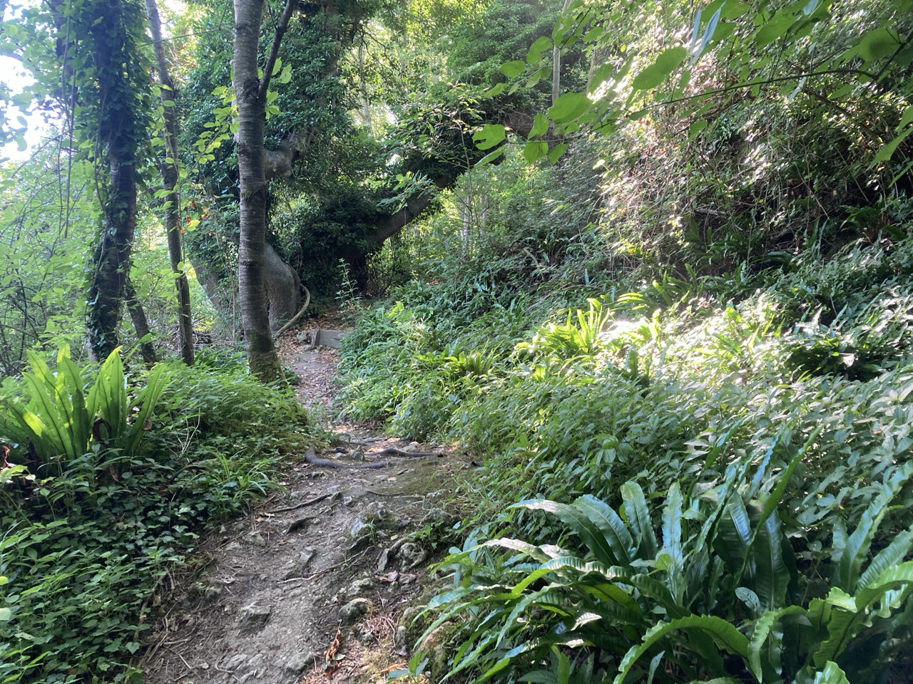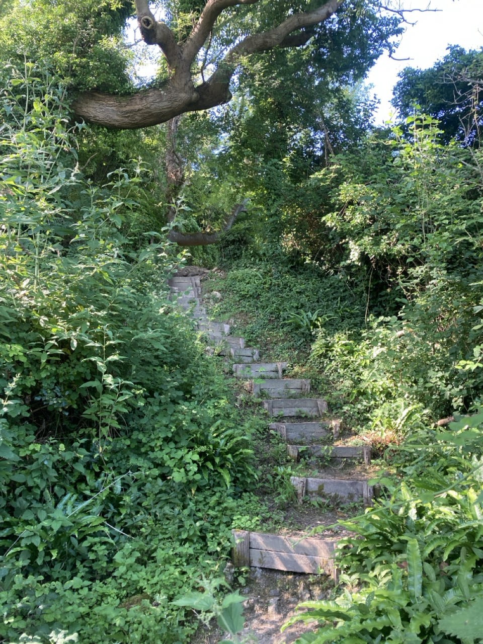 Réveil au soleil pour avancer sur les falaises des Graves. C’est un joli sentier dans la forêt avec plein de fougères et… d’escaliers 😅