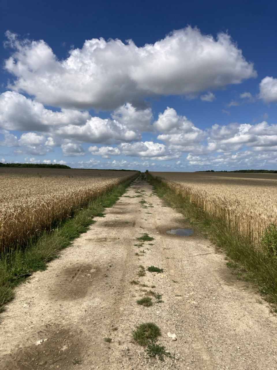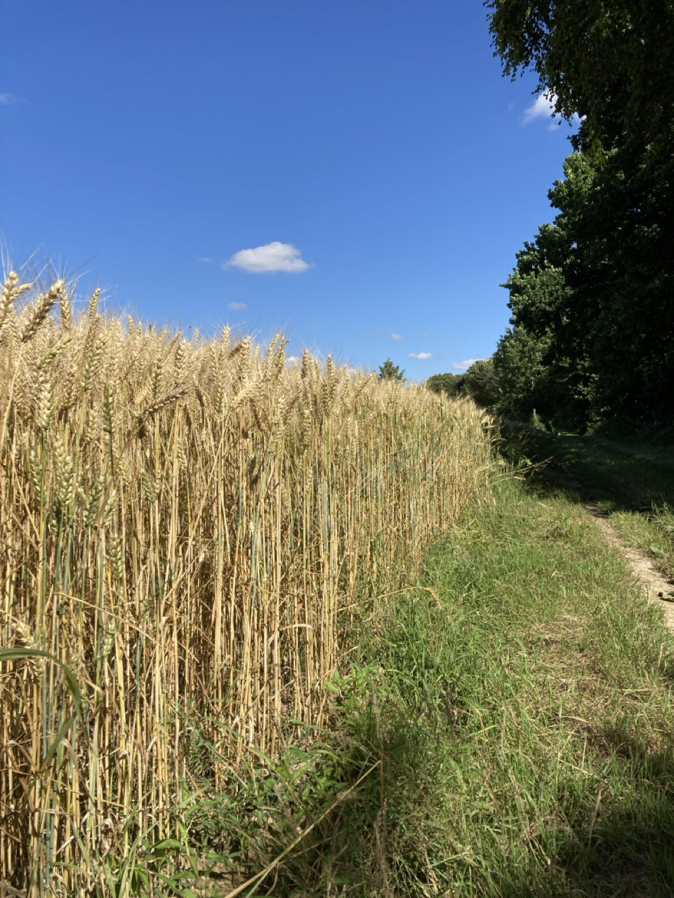 10h. Je descends du coteau pour passer sous l’autoroute des estuaires (A29) puis je remonte de l’autre côté vers Sandouville pour avancer entre les champs. Du soleil et du vent, mais j’ai déjà bien chaud. 🥵 L’été n’est vraiment pas ma saison préférée pour randonner.