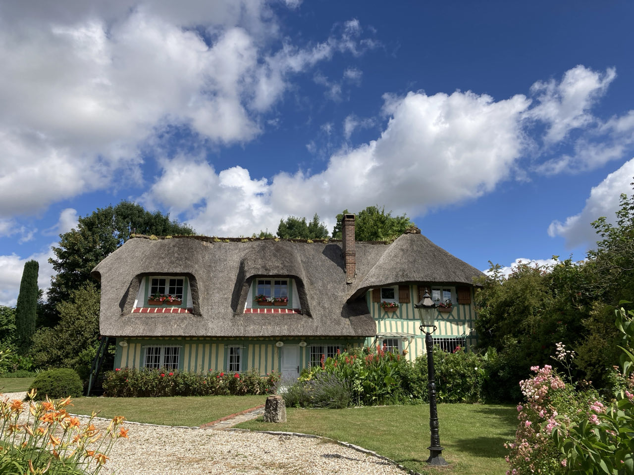 16h. Je demande de l’eau à un monsieur qui débroussaille son jardin. Il est sympa et je le questionne sur le coin. Puis, je me dirige vers l’épicerie de Saint-Vigor-d’Ymonville pour acheter du pain et quelques fruits. Tenue par un ancien policier, il finit presque chacune de ses phrases par « Madame » et me lance lorsque je pars « Profitez Madame ! »