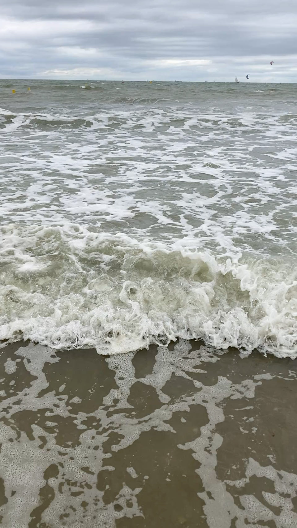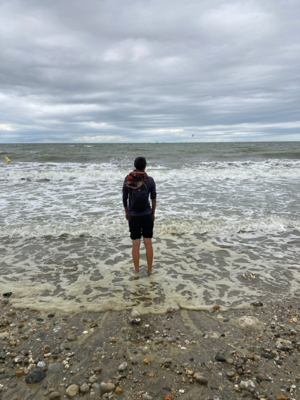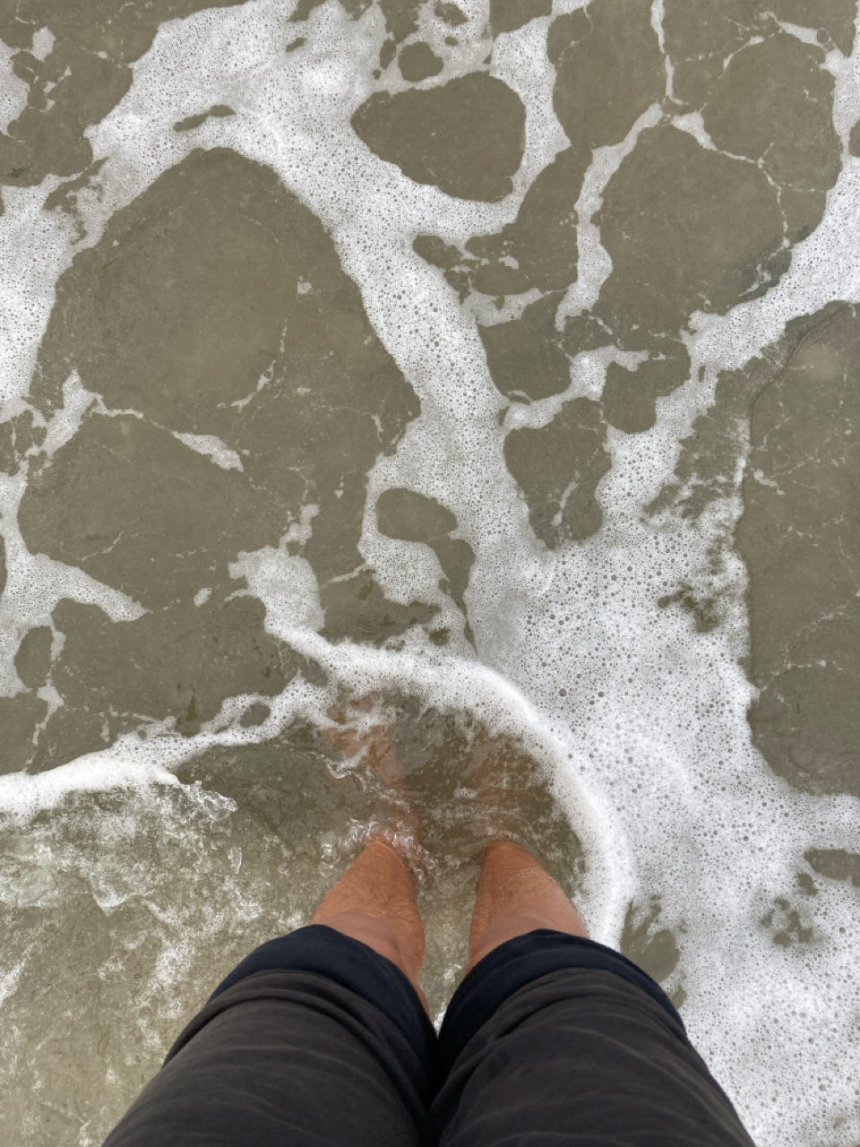 16h. Du vent et de l’écume. J’ai mis les pieds dans l’eau pour la dernière fois. Une vague plus puissante que les autres a mouillé mon pantalon.