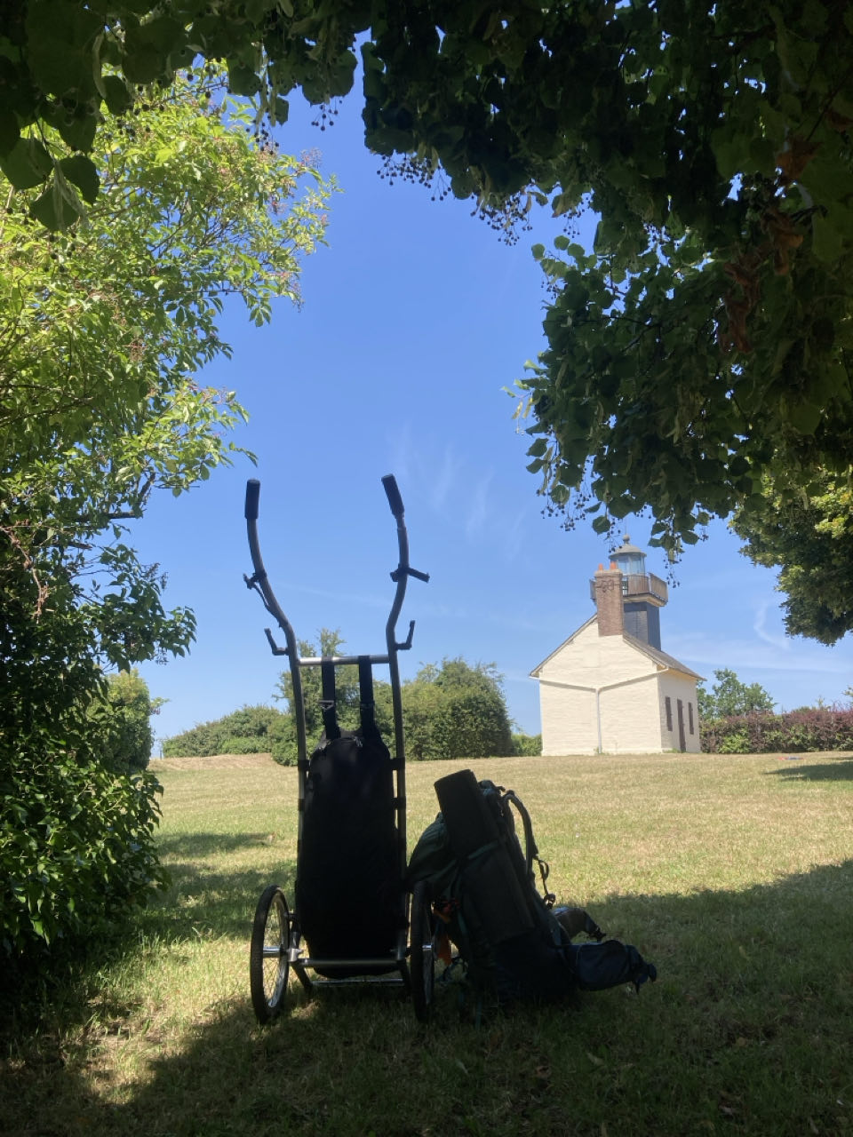 Je pique-nique à l’ombre d’un grand tilleul. Il fait déjà chaud. Deux voitures arrivent. 🚗🚙 Des retraités et leurs petits-enfants s’installent sous un autre tilleul. Je leur demande un peu d’eau et propose aux enfants de tirer Rouletabosse ! Et je discute un peu avec Babette et Béatrice.