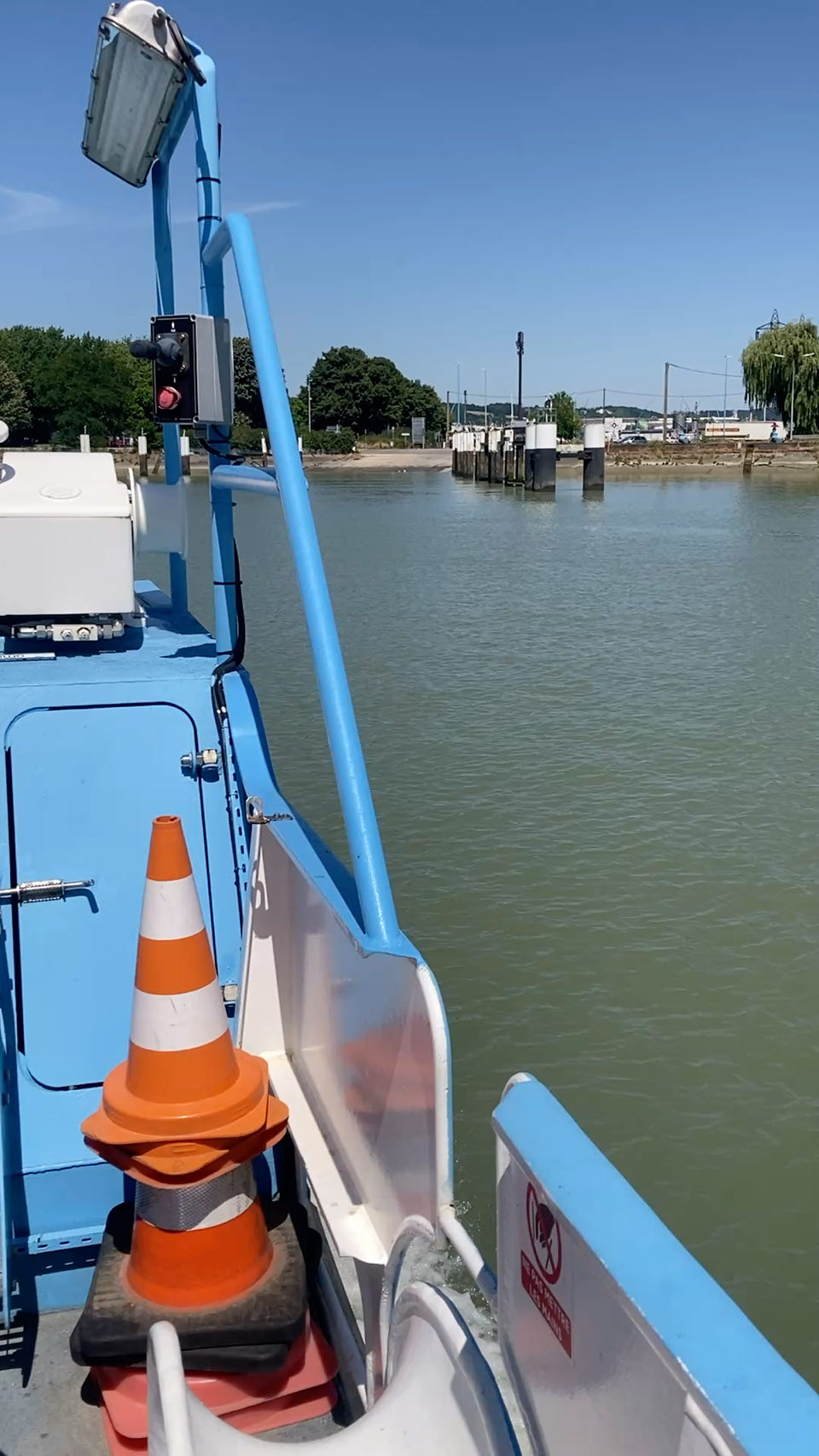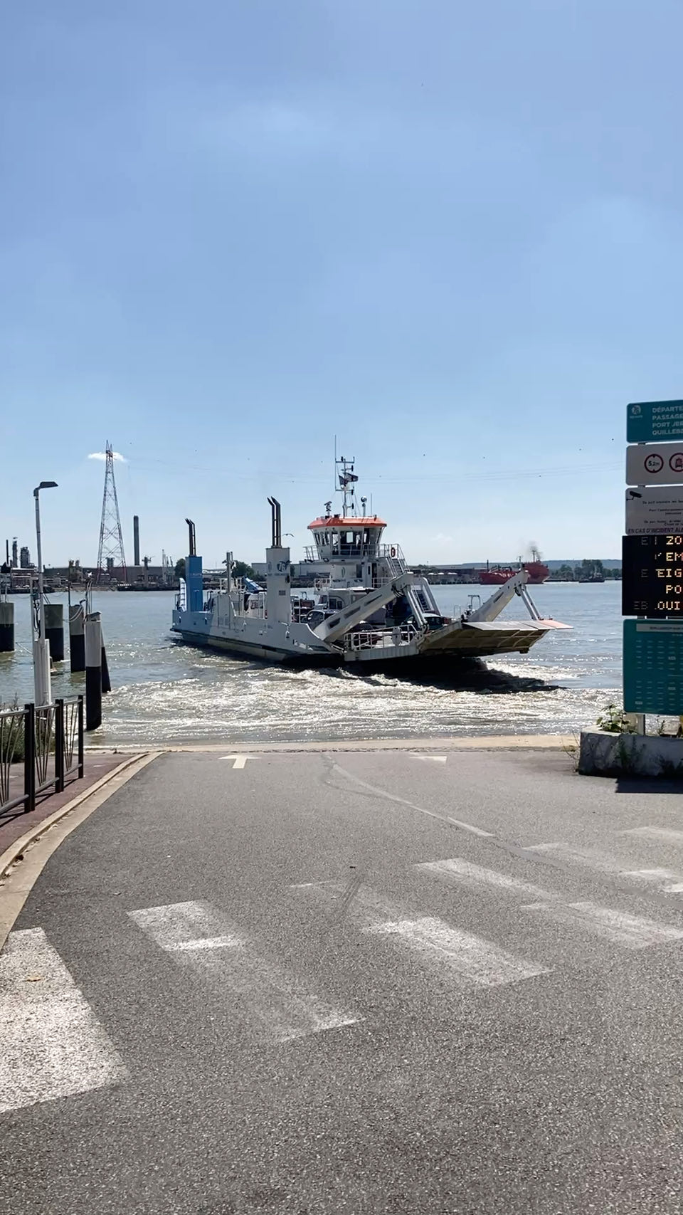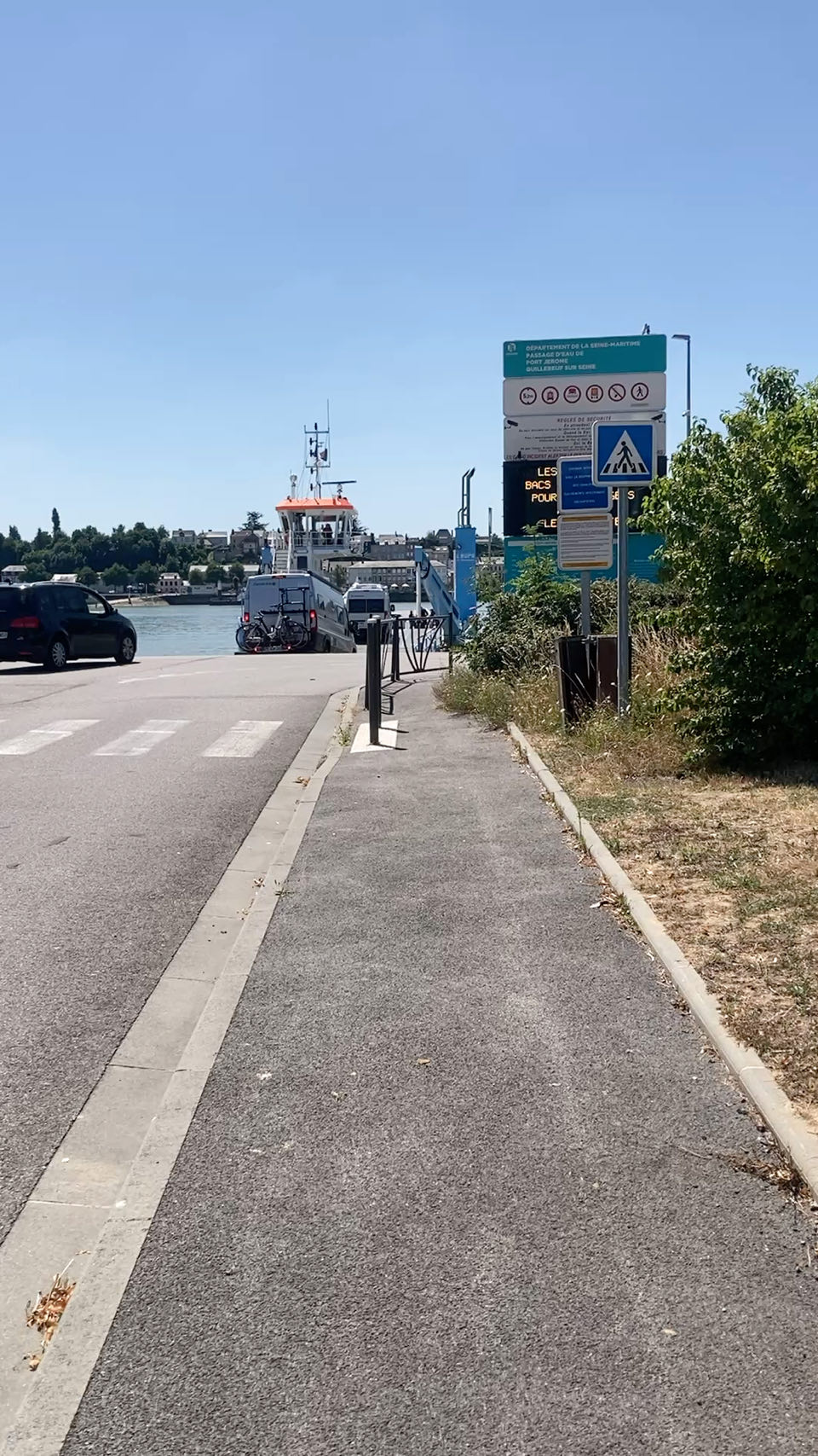 Pas mal de kilomètres sur des routes en plein soleil. ☀️ Je traverse le marais Vernier et j’arrive à temps à Quilleboeuf-sur-Seine pour faire des courses. Une dame qui fait la queue me demande « vous prenez le bac ? » quand je réponds que non, pas tout de suite, elle complète « sinon je vous laisse passer. Vous savez ici, on a l’habitude ». Le bac qui traverse la Seine vers la raffinerie sur l’autre rive semble rythmer la vie d’ici. Quelque chose me parle dans cette ville, me donne envie de la connaître, de rencontrer les gens qui y vivent.