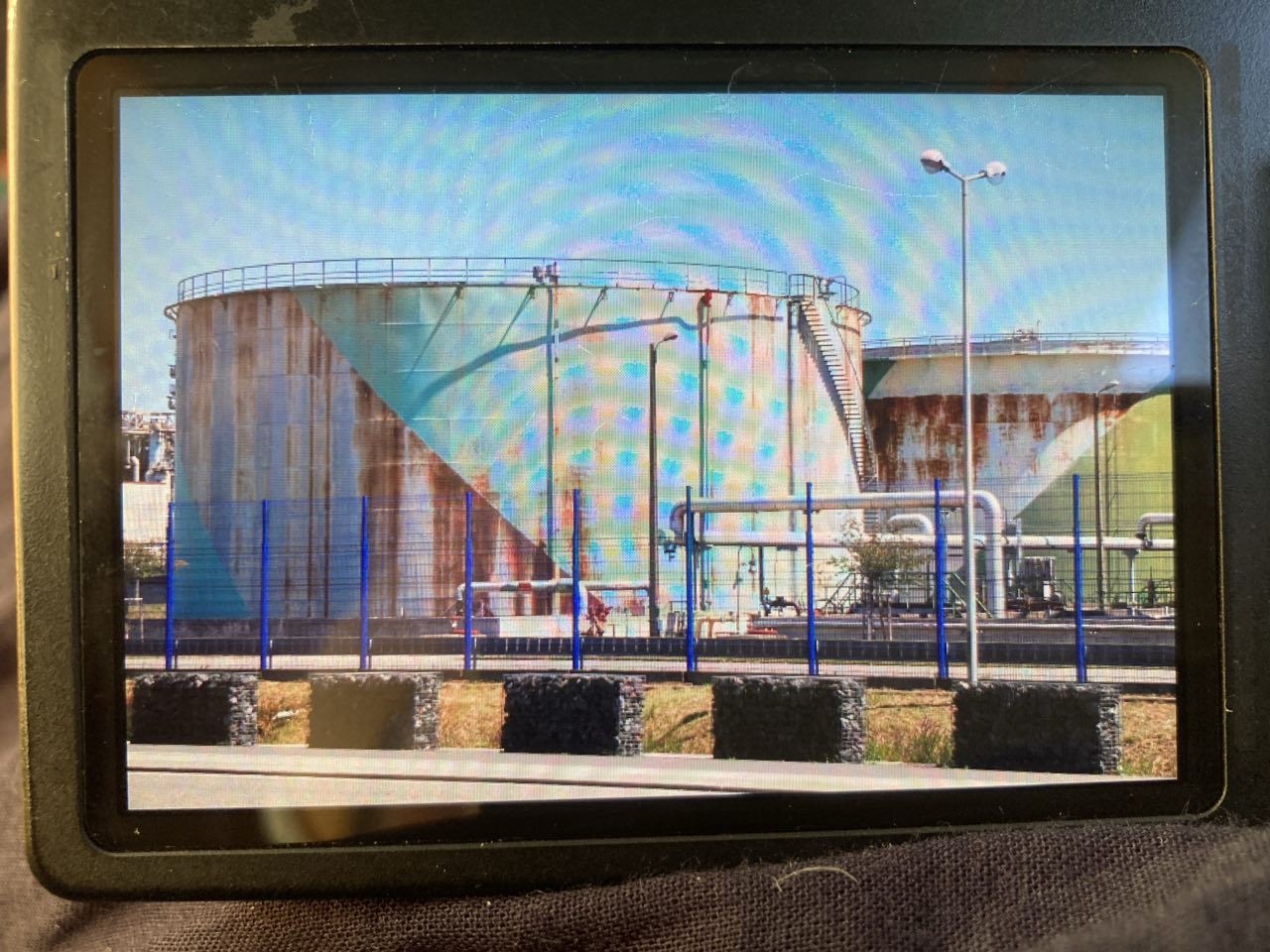 22h24. Il n’y a pas que des bruits de moteurs… Le grondement de fond, c’est la raffinerie 😆 Je ne suis pas très loin et je vois les cheminées qui se détachent dans le ciel.