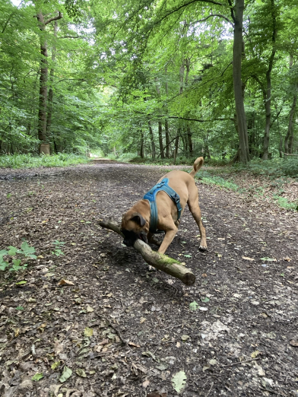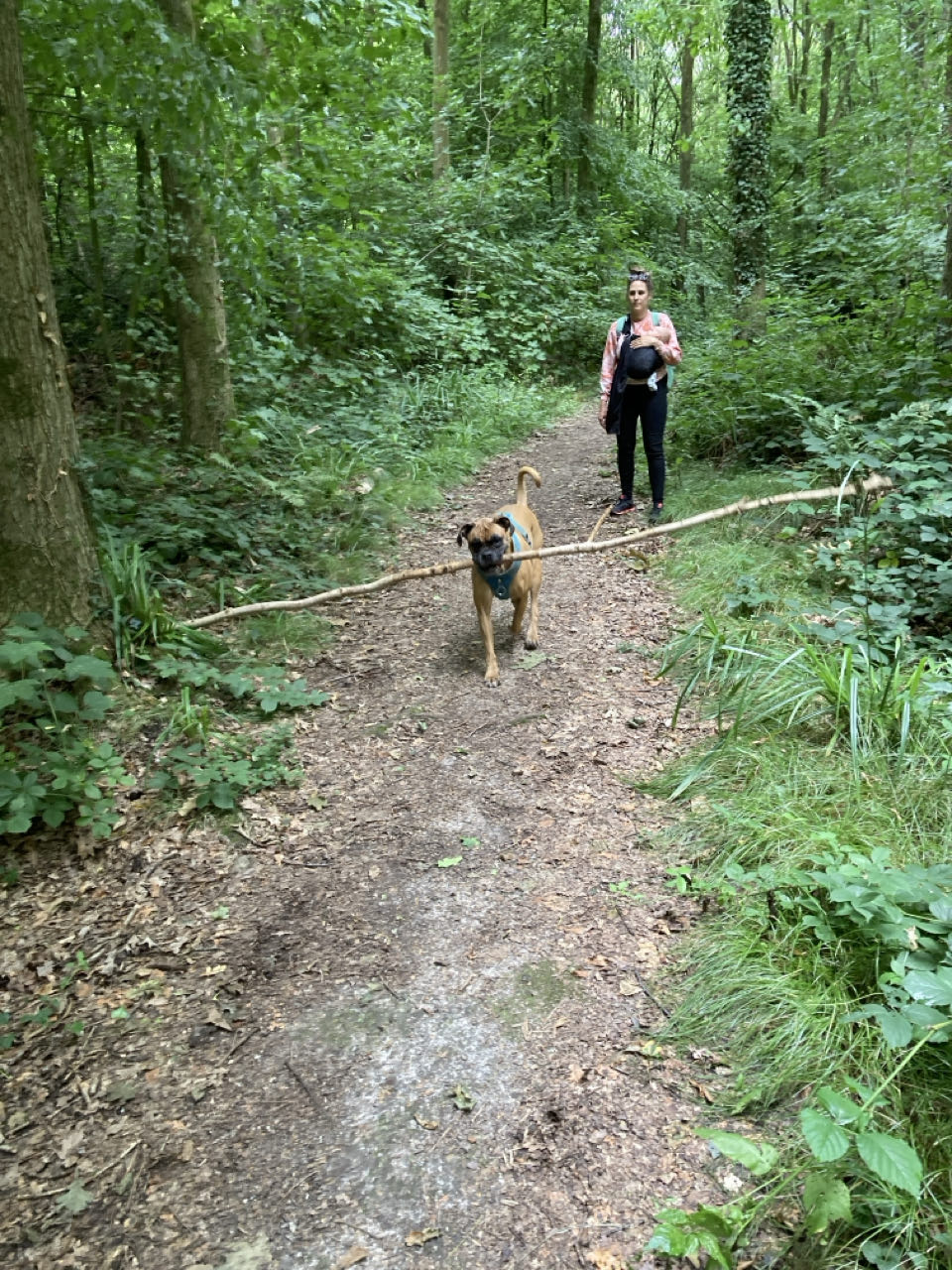 Olive cherche le plus grand bâton de la forêt 🐕