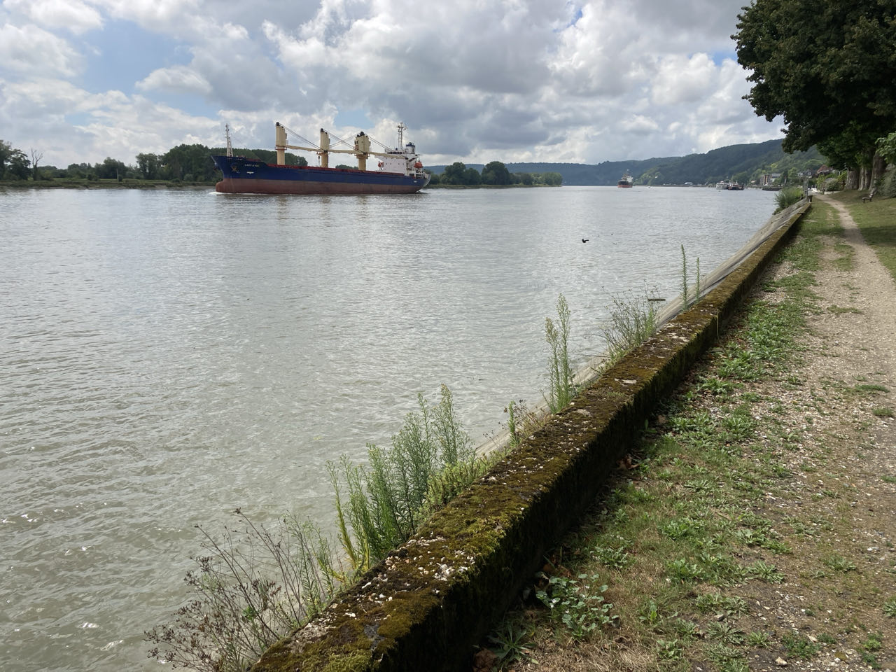 J’arrive sous le pont de Brotonne puis dans la vallée de Fontenelle où je marche en compagnie de Didier et de son labrador Outlook.