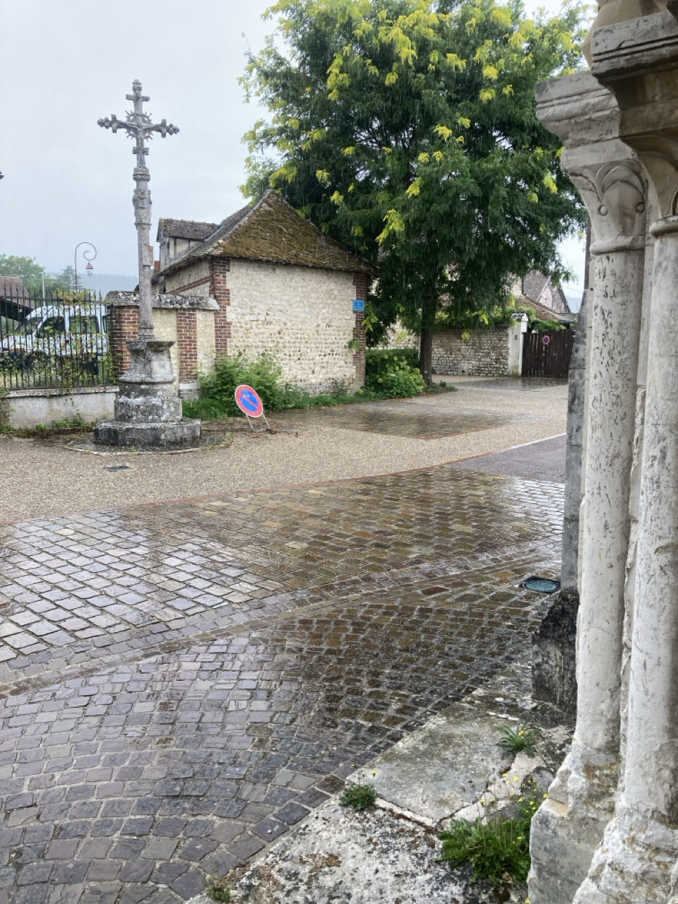 14h. Le ciel se couvre. Une odeur de pluie. Quelques minutes plus tard, l’averse. ☔️ Je mange sous le porche.