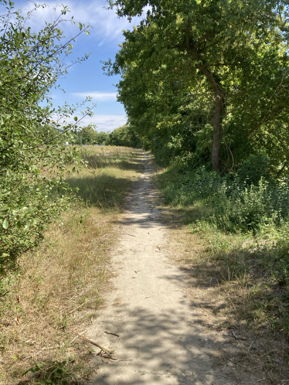 Une journée entre chaleur, fraîcheur des rives arborées, zones industrielles, villes, chemins. Parfois, du monde. Parfois, personne. Je retrouve les ambiances franciliennes que je connais. Du bruit, de la nature, des ordures, des contrastes. J’ai beau ne plus vouloir y vivre, je sens que je reste attachée à cette région. Ça me fait plaisir d’y marcher.