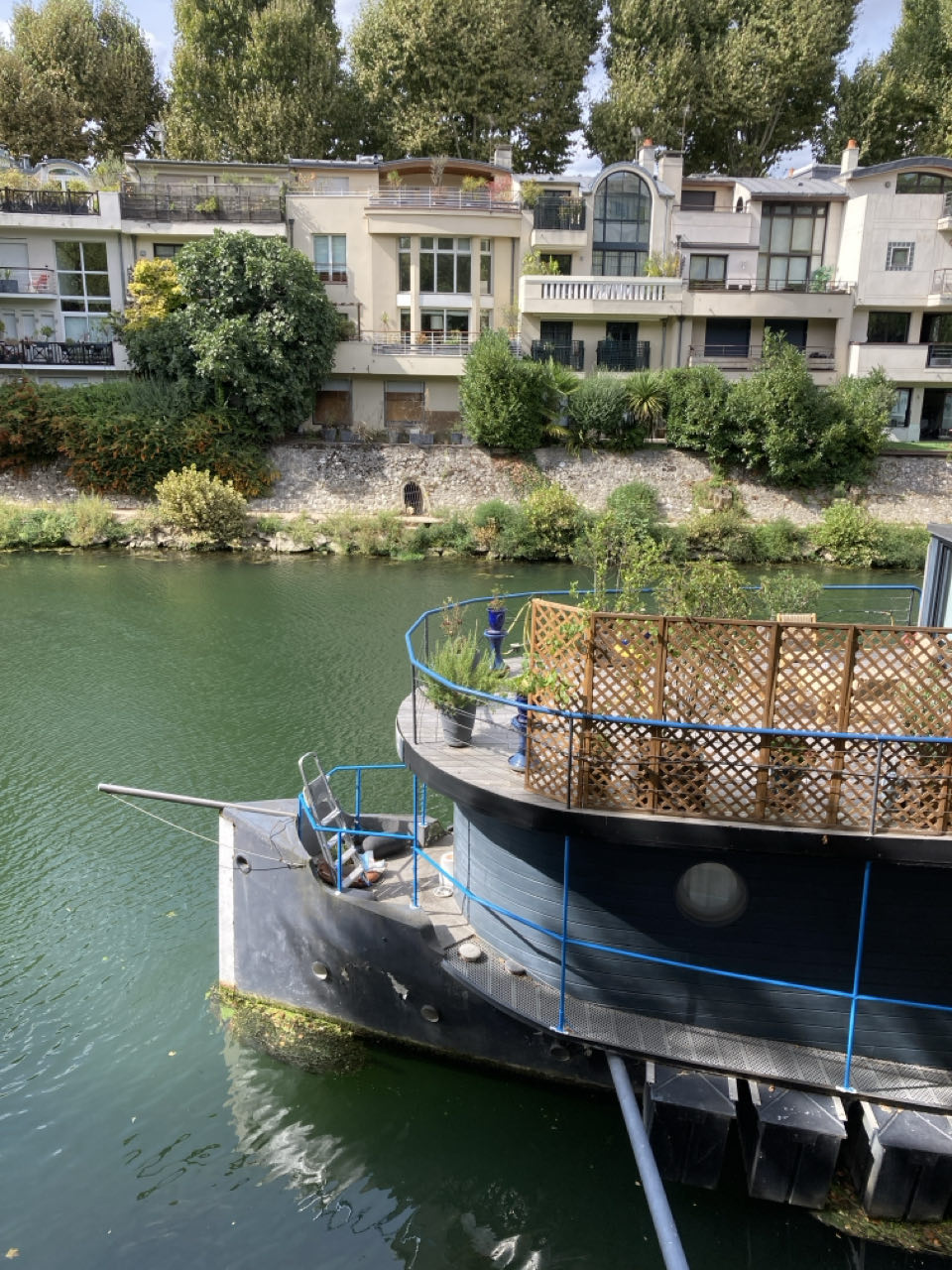 Beaucoup de grands axes routiers. Des passages pas toujours adaptés aux piétons ni aux chariottes 😅 Toujours des péniches habitées amarrées, je suis étonnée d’en voir un peu partout le long du fleuve, de Villeneuve-la-Garenne à Meudon. Des barres d’immeubles aux maisons chics. L’enfer de la porte saint cloud. La surprise du parc de Saint-Cloud partiellement fermé : je dois aller jusqu’au point de vue. Allez, une petite montée surprise! 😵💫