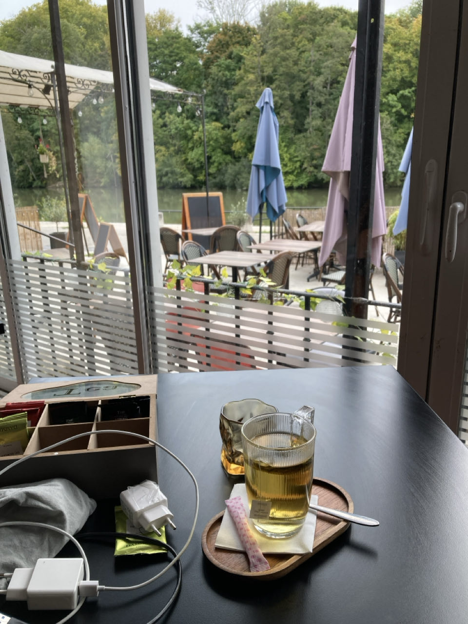 Samois-sur-Seine. De jolies maisons en pierre, quelques restaurants. Il est 11h, j’hésite… 🍵 Allez, je m’arrête pour un thé puis pour déjeuner ! Aline m’accueille gentiment, garde mes affaires le temps que j’aille faire des courses avant la fermeture des commerces.