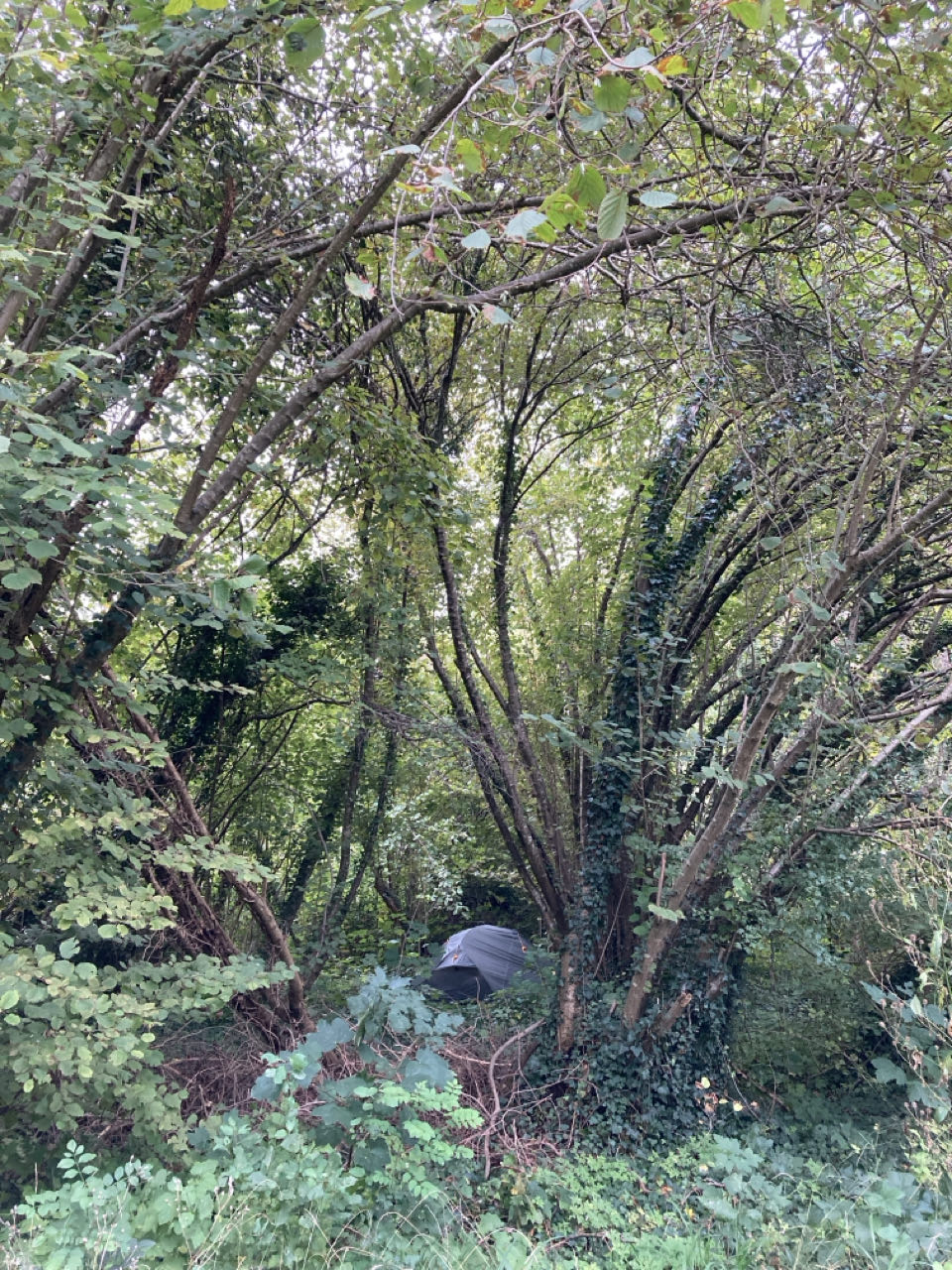 Pas envie de bouger aujourd’hui, je vais rester là ce soir. Ou peut être aller dans la forêt derrière. Ici, je vais avoir beaucoup de rosée et quelqu’un a déposé une énorme crotte dont les mouches se régalent. 💩