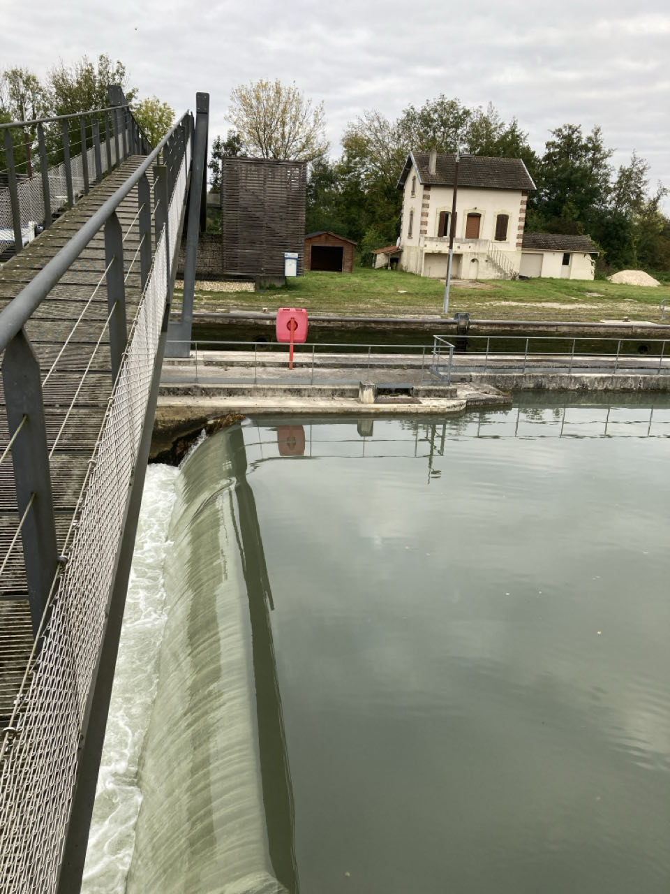 Tout est plus calme maintenant. Je traverse des petits villages. La Seine s’est affinée mais des péniches circulent toujours. Je découvre encore un nouveau barrage !